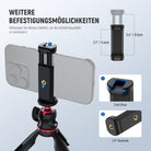 Kamera Stativ für Smartphones- Der verstellbare Phone Holder ist kompatibel mit iPhone 16 15 Pro Max Plus iPhone 14 Samsung Galaxy S25 S24 S23 Ultra Google Pixel 9 8 7 Pro und Android und verfügt über einen Cold Shoe für Fotozubehör oder Filmzubehör wie Monitor, Aufhellblitz oder Mikrofon. Der kompakte Hand Selfie Stick als Webcam Stativ ist mit den Action Kamera Adaptern (nicht enthalten) auch kompatibel mit GoPro DJI Osmo Pocket 3 Insta360 x5 x4 Go Pro und Insta 360