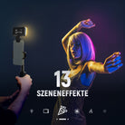 - CCT/RGB/FX Beleuchtungsmodi- Die LED Videoleuchte verfügt über hochwertige warme, kalte und RGB LEDs, die bis zu 520Lux/0,3m weiches Dauerlicht liefern, und bietet CCT, RGB und FX Modi. Es ermöglicht 3 Farbtemperaturstufen und 7 statische RGB Effekte sowie 13 dynamische RGB Effekte, die über 2 unabhängige Tasten gesteuert werden, sowie 5 Helligkeitsstufen, sodass Sie Beleuchtung einfach an unterschiedliche Umgebungen anpassen und die gewünschte Stimmung für Ihre Fotos oder Filme erzielen können
