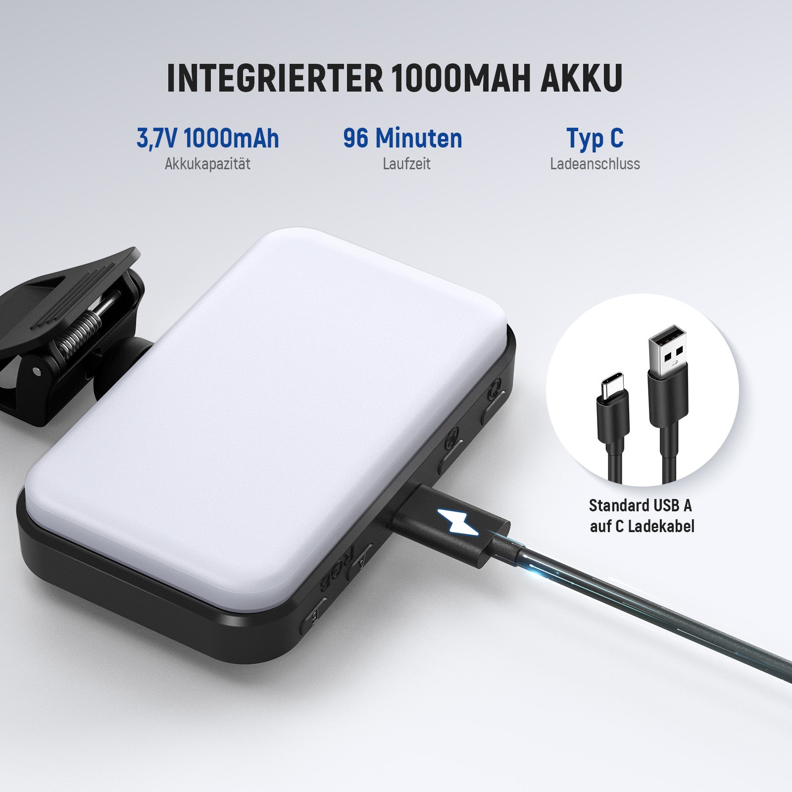 - Wiederaufladbares LED Video Aufhelllicht- Der eingebaute 1000mAh Akku versorgt das Handy Video Light bis zu 96 Minuten mit einer vollen Ladung. Das Aufladen erfolgt einfach über eine 5V/1A Stromquelle (Netzladegeräte, tragbare Ladegeräte oder Computer) mit dem USB Typ Ladekabel. Dieses Handylicht ist die ideale Wahl für müheloses Erstellen von Inhalten unterwegs und ein unverzichtbares Selfie Zubehör für Kreative, Streamer und Influencer