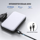- Akkukapazität: 3,7 V 650 mAh 2,4 Wh