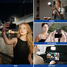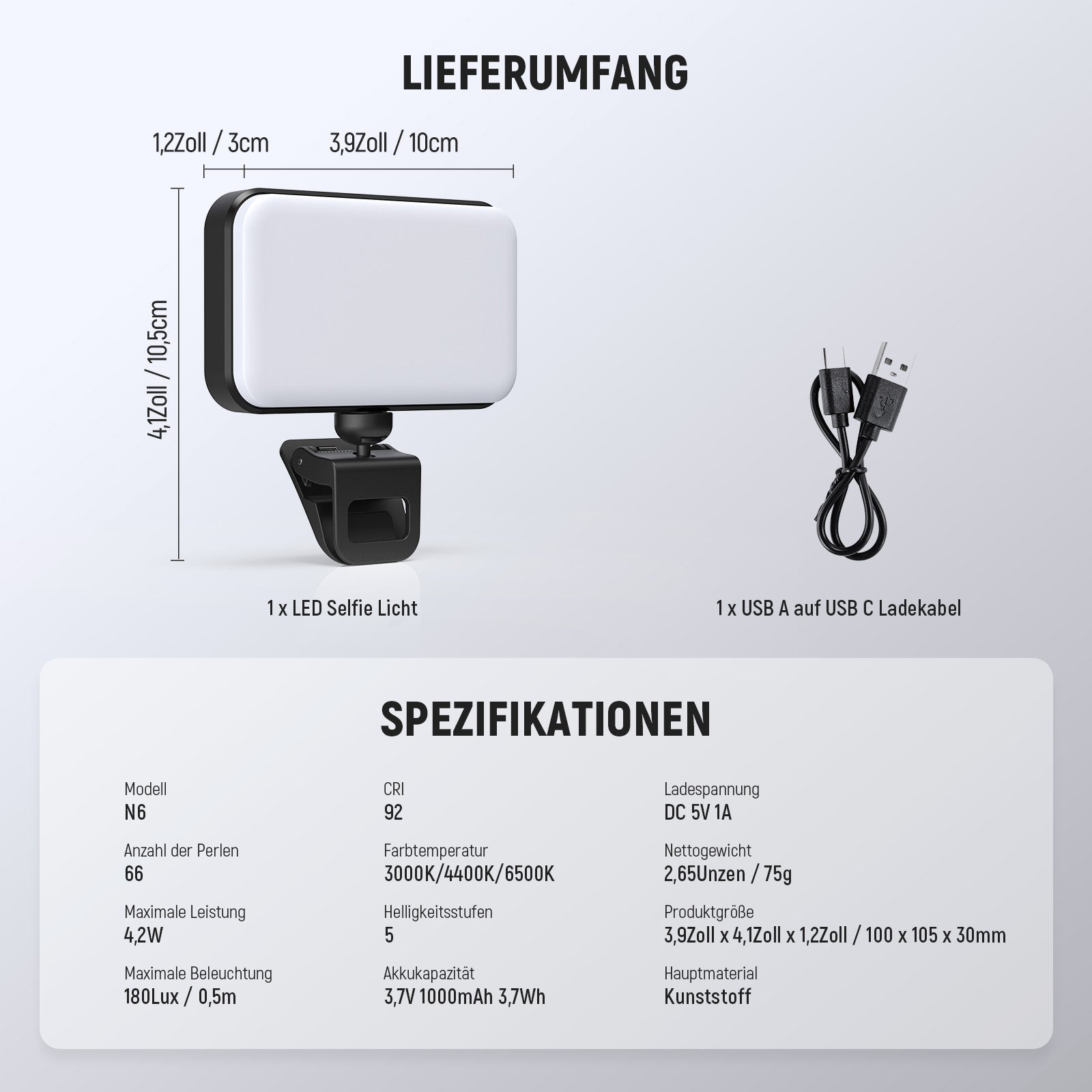 Vielseitiges Fotografie Beleuchtung Set- Beinhaltet 1 x LED Selfie Handy Licht, 1 x Befestigungsclip und 1 x USB A zu USB C Ladekabel. Dieses LED Licht bringt Ihre Haut zum Strahlen und lässt Sie vor der Kamera besser aussehen, egal ob Sie an einem Zoom Meeting teilnehmen, live auf Social Media streamen, einen Vlog für Ihren YouTube/TikTok Kanal filmen, als Content Creator Podcast Videos aufnehmen oder einfach als Makeup Artist nach einem Make up Licht suchen
