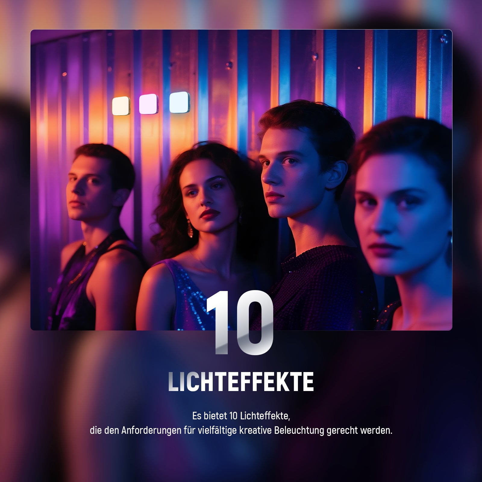 - RGB Fotolicht mit anpassbarer Beleuchtung- Die RGB Kamera Video Licht verfügt über 126 hochwertige LEDs (42 warm + 42 kalt + 42 RGB), die in einem integrierten Diffusor untergebracht sind, um eine weiche, gleichmäßige Ausleuchtung von bis zu 500Lux/0,5m zu gewährleisten. Es bietet 10 Lichteffekte, einen breiten Farbtemperaturbereich von 3000K bis 9000K und eine einstellbare Helligkeit für Porträtfotos, Filmaufnahmen, YouTube TikTok Vlogs, Videoaufnahmen, Live Streaming, Make up und vieles mehr