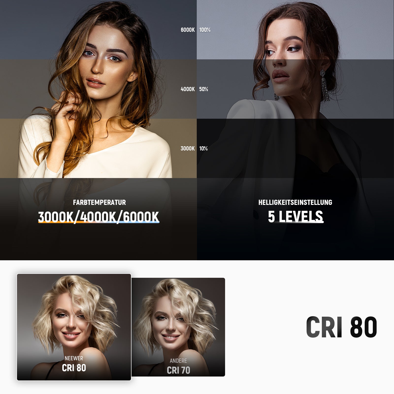 - LED-Menge: 72 (36 Warm & 36 Kalt)