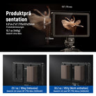 - 2000nit Touchscreen und automatische Steuerung der Hintergrundbeleuchtung- Der Feldmonitor verfügt über 7" IPS Touchscreen mit einer Auflösung von 1920 x 1080 Pixeln, 2000nit Helligkeit, 1000:1 Kontrastverhältnis, 16:9 Seitenverhältnis, 160° ultrabreiter Betrachtungswinkel und um 180° verstellbaren Halterung. Verbesserte manuelle und automatische Einstellung der Hintergrundbeleuchtung für unterschiedliche Lichtverhältnisse (1-100), Videomonitor mit Drucktasten und Touch Bedienung (abschaltbar)