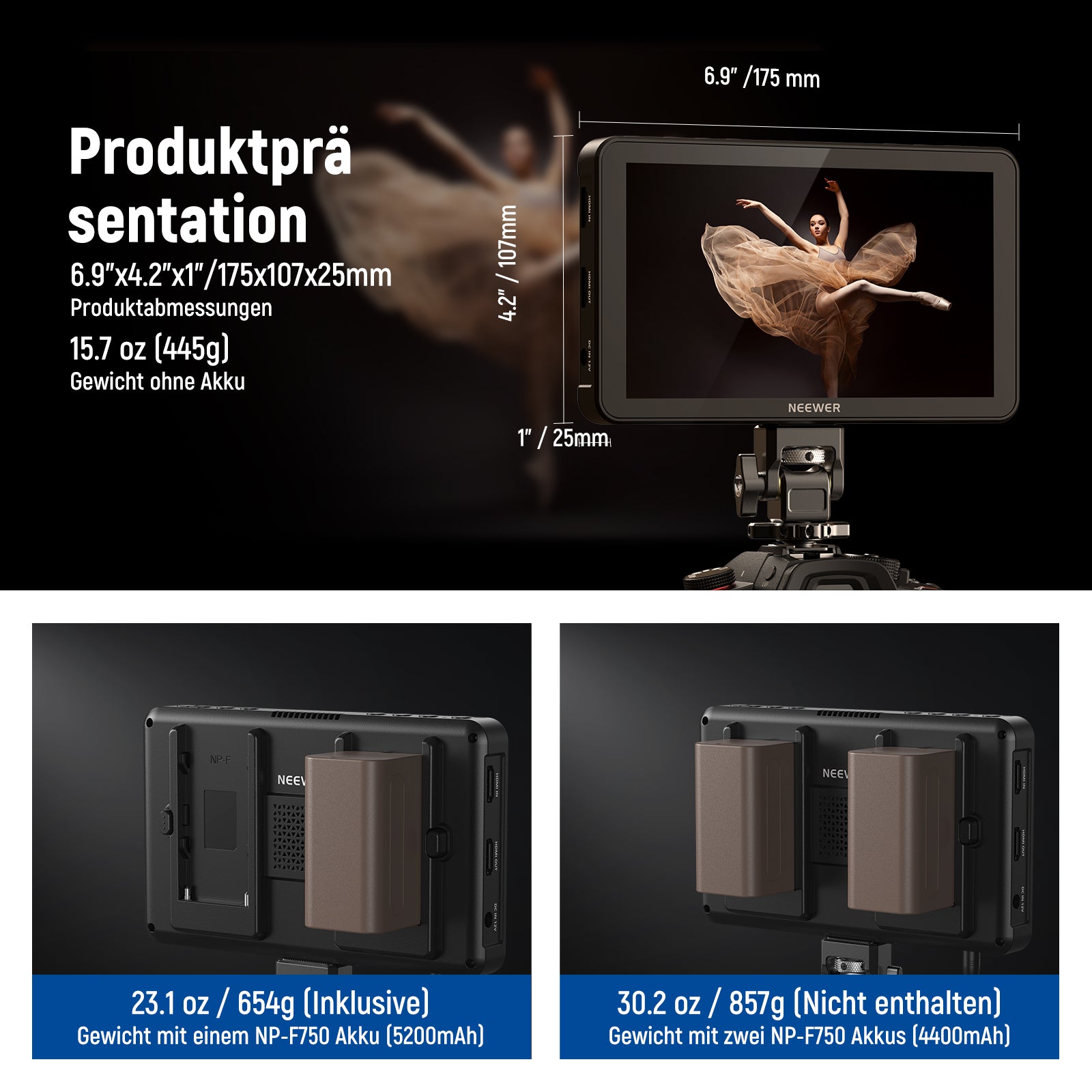 NEEWER F700 7" HD Kamera Feldmonitor mit Touchscreen