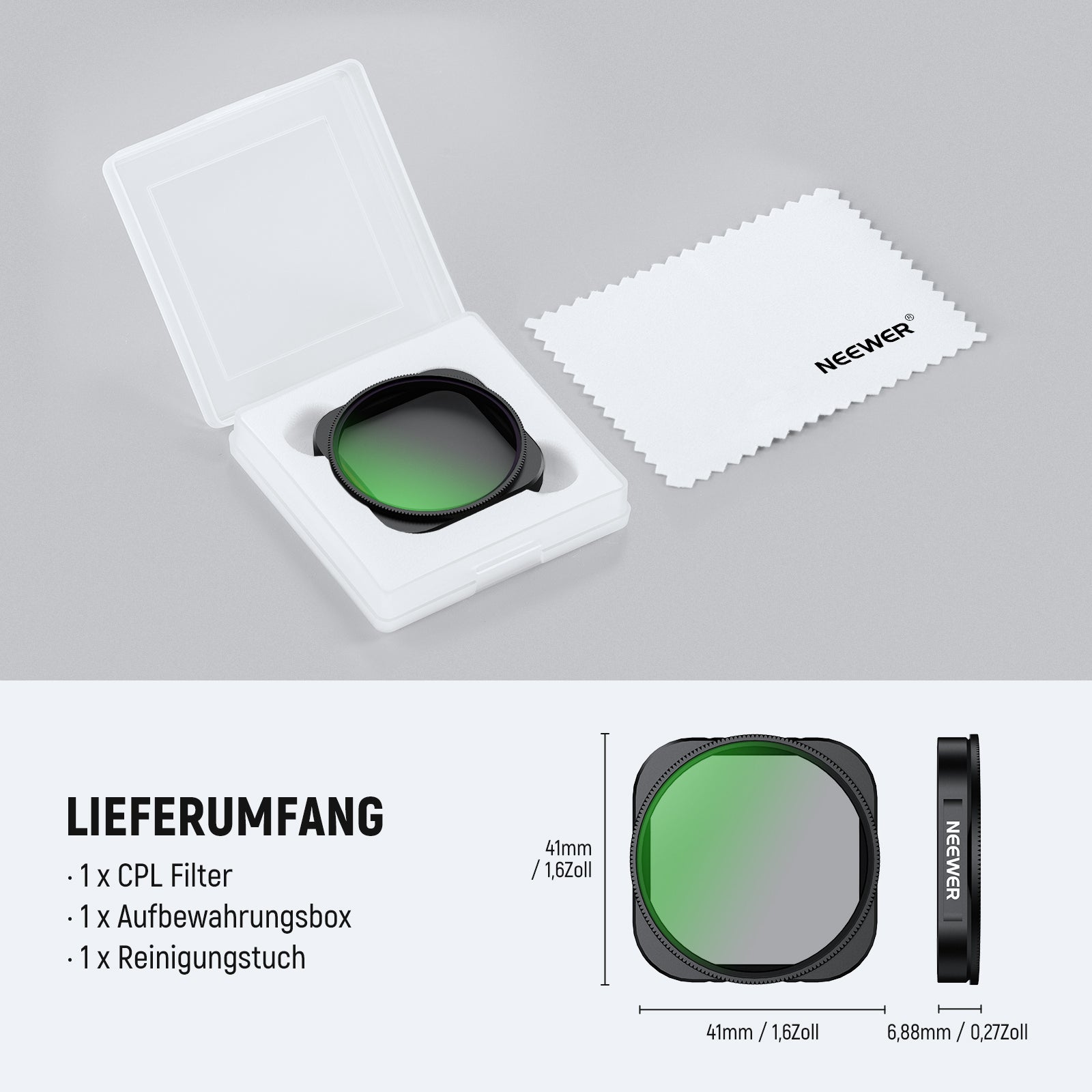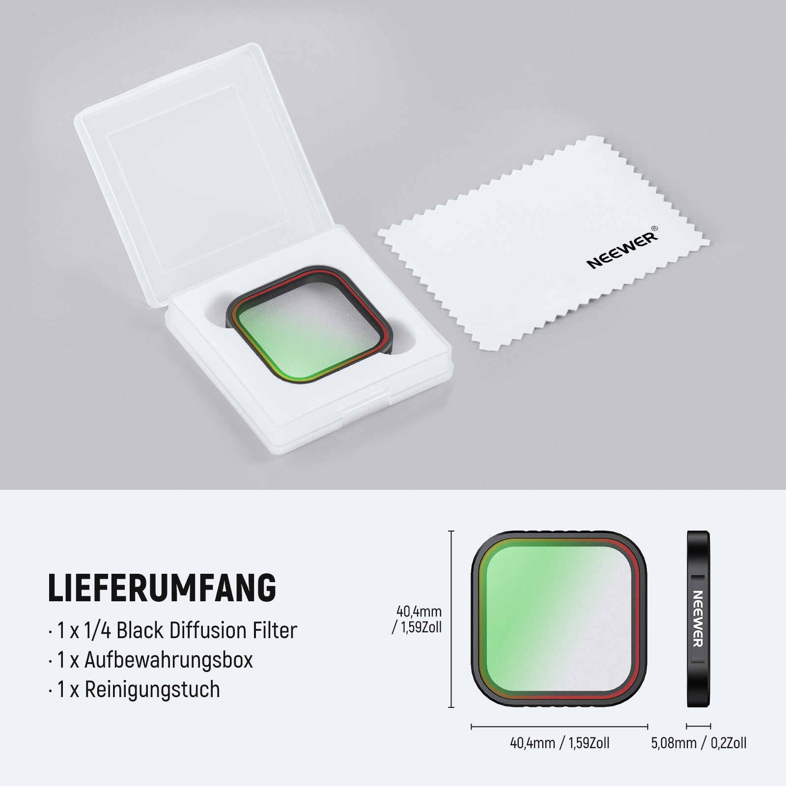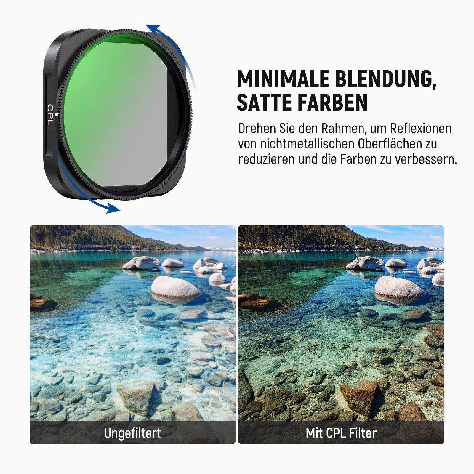 - Filtertypen: CPL/UV/Black Diffusion