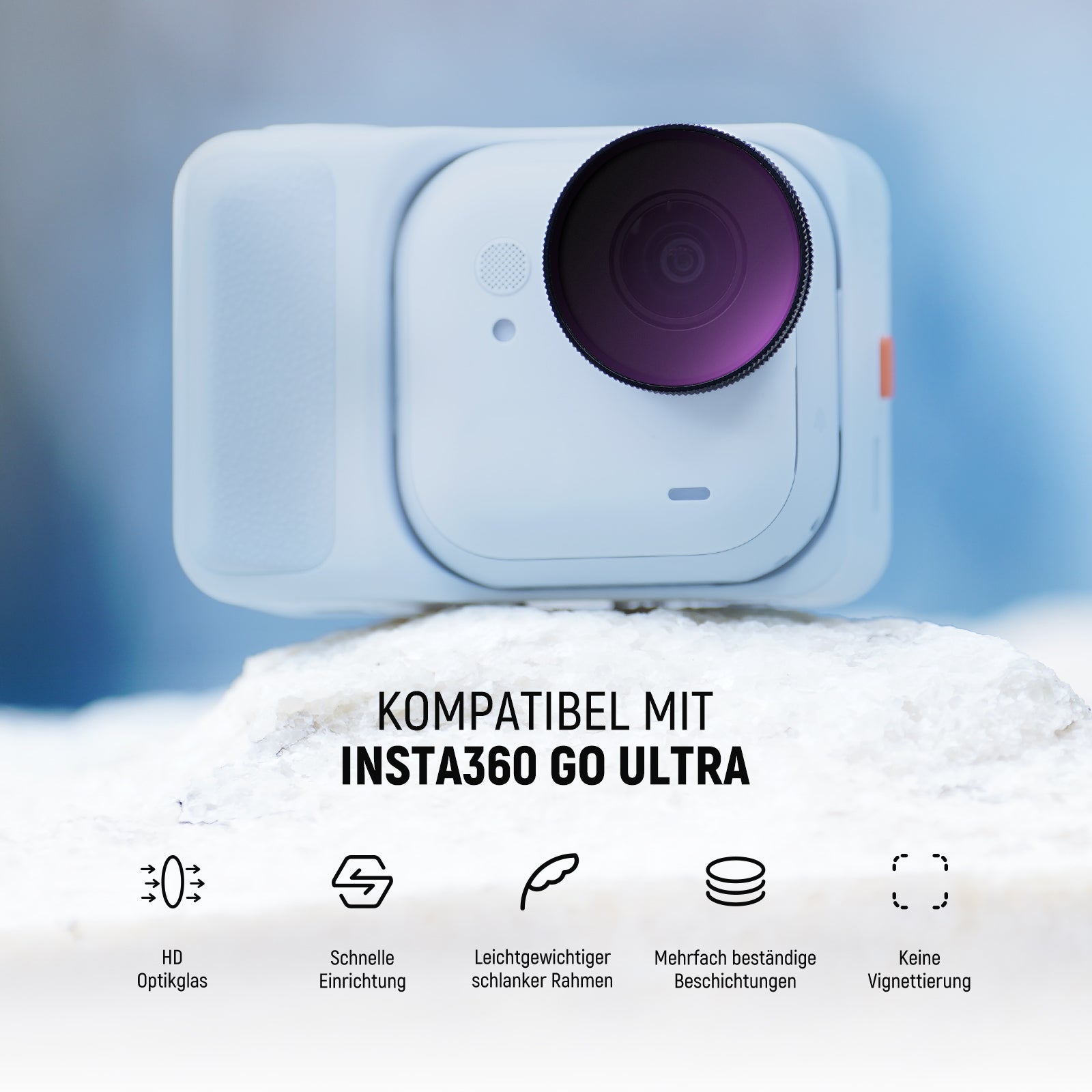 - Kompatibel mit GO Ultra- Dieses Filterset ist kompatibel mit Insta360 GO Ultra Action Cam. Hinweis: Nicht für den Einsatz unter Wasser geeignet, da Wasser eindringen und die Bildqualität beeinträchtigen kann