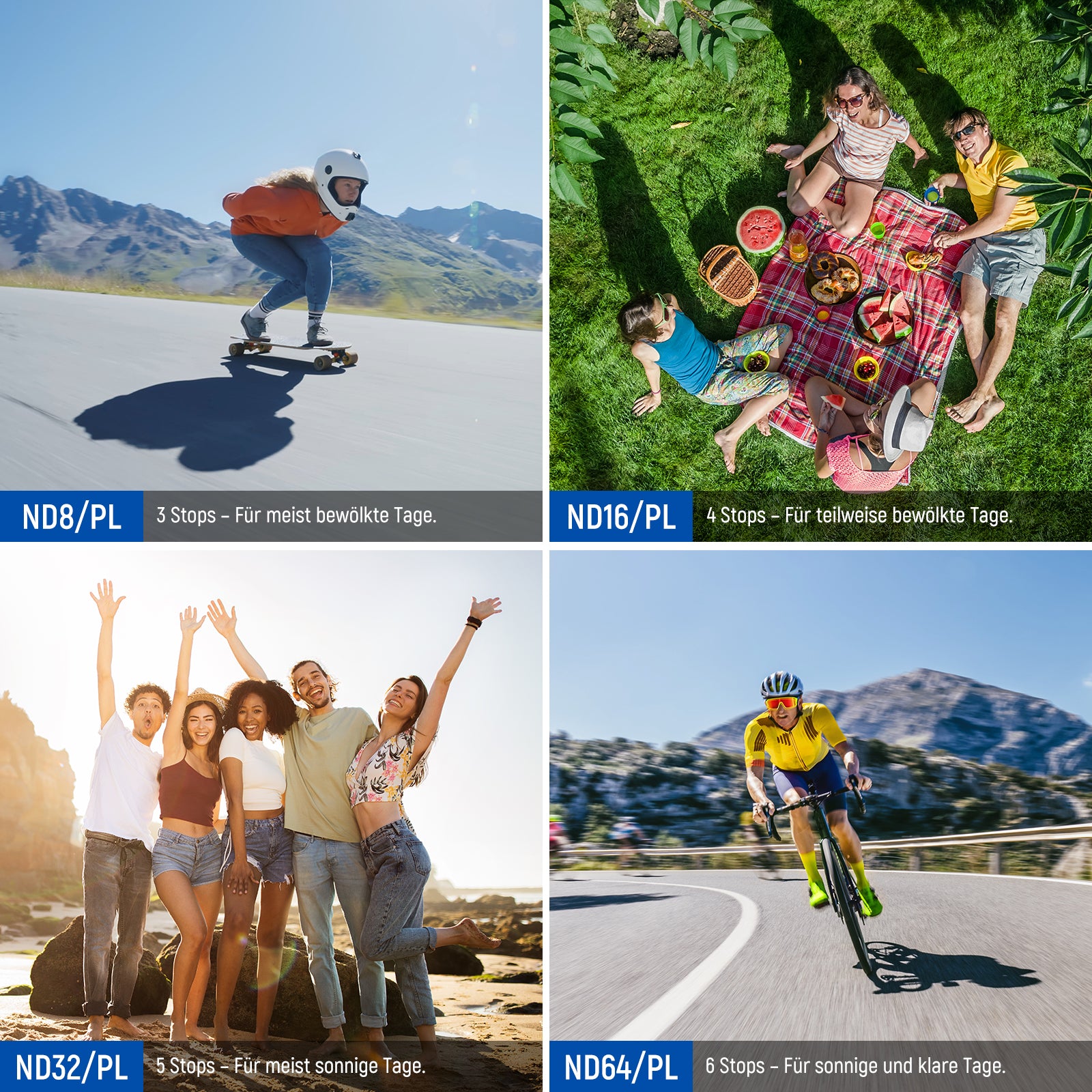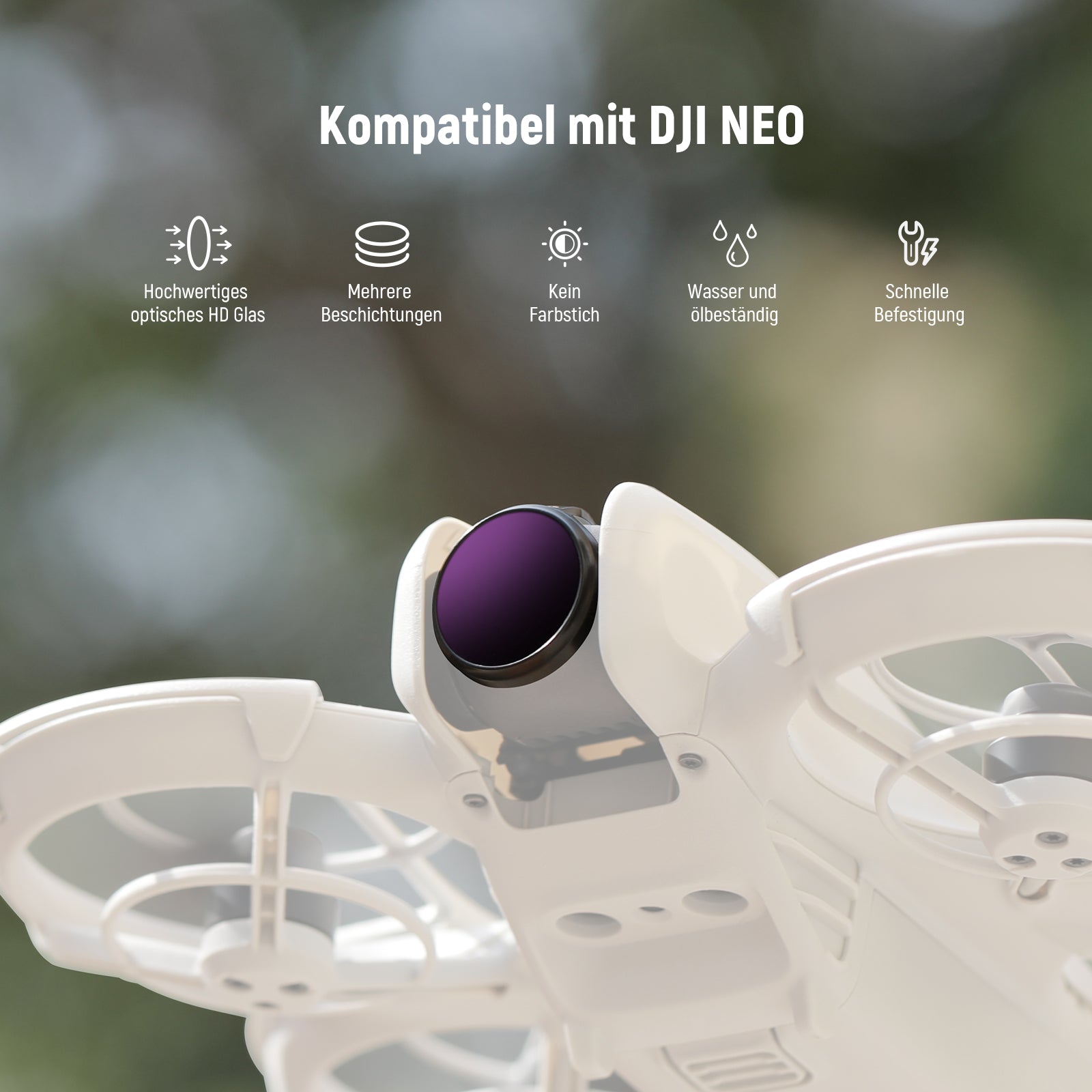 - Kompatibel mit DJI NEO Drohne Dieses polarisierte ND-Filter-Set enthält einen ND8/PL, einen ND16/PL, einen ND32/PL und einen ND64/PL-Filter für professionelle Luftaufnahmen und Videografie