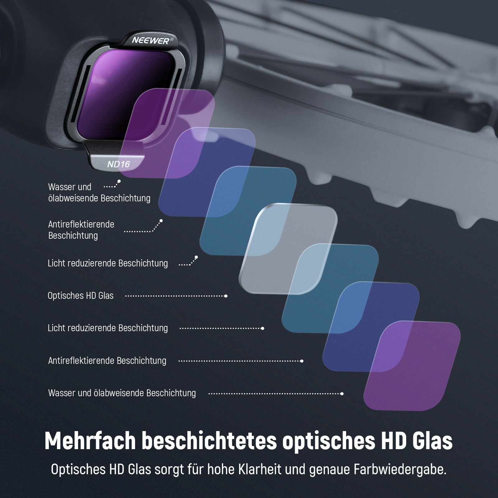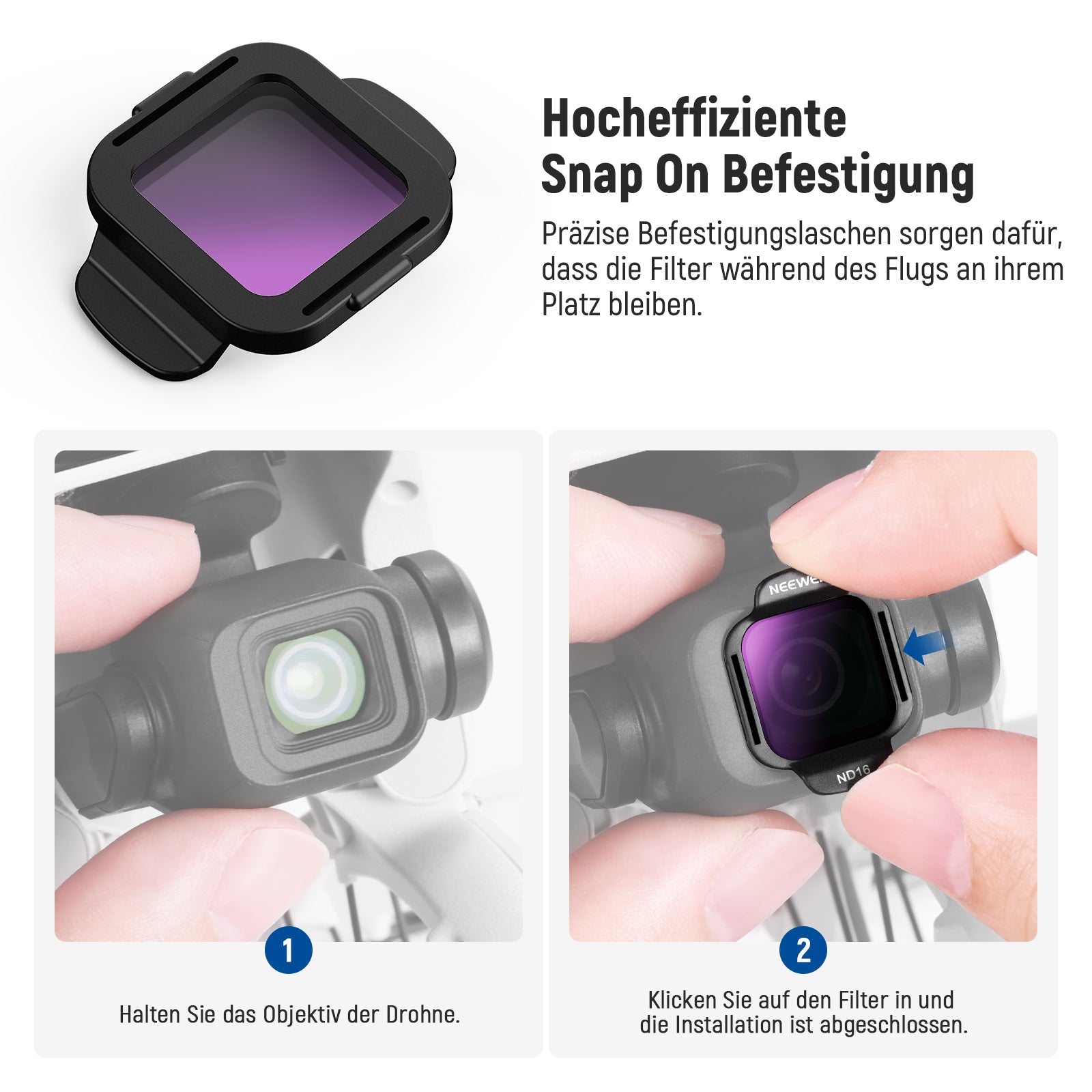 - Leichte und schlanke Struktur- Jeder Filter gewährleistet eine leichte, schlanke und dennoch robuste Konstruktion für die Drohnenaufnahmen im Freien bei allen Wetterbedingungen