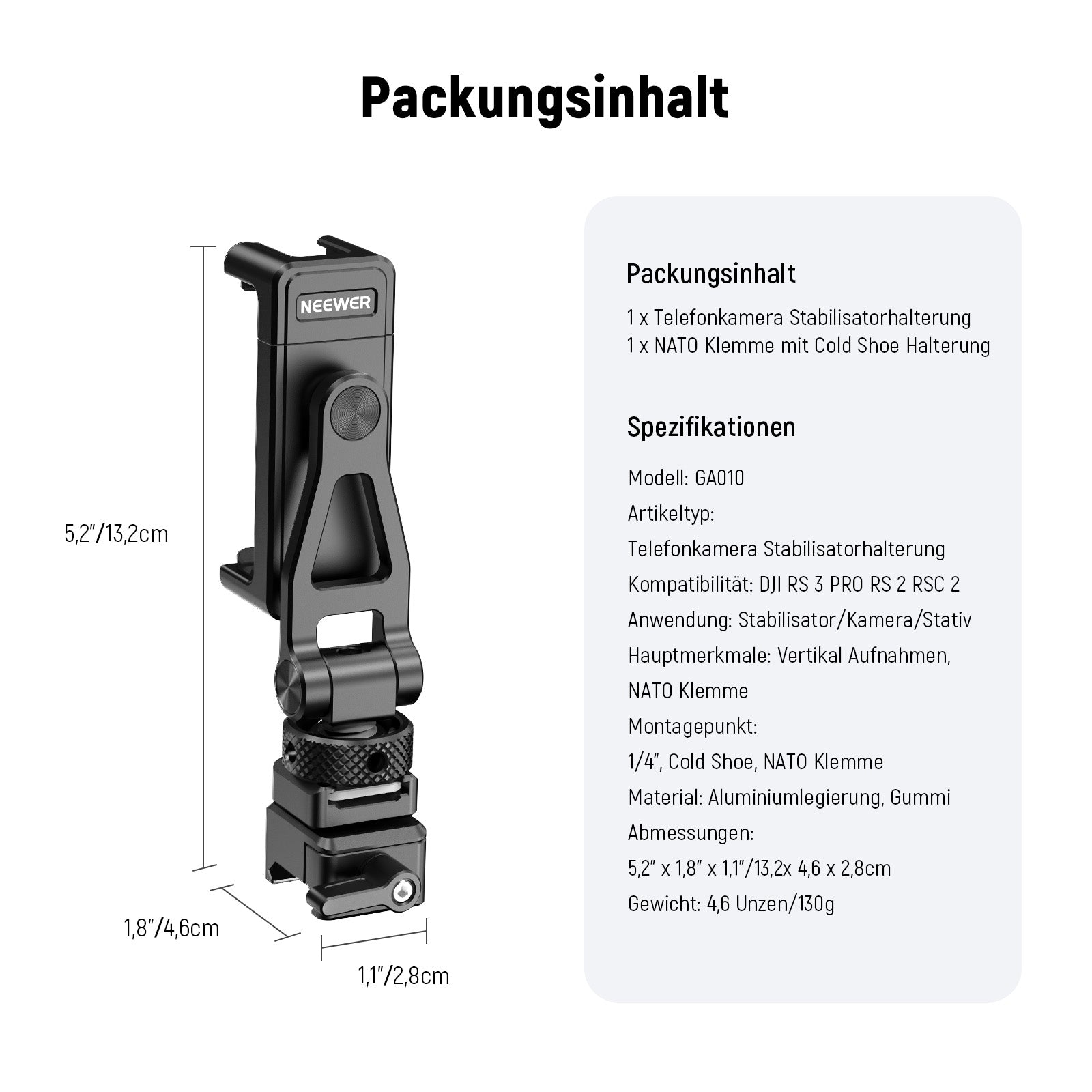 NEEWER GA010 Metall Telefonstativhalterung Für DJI RS 2 RSC 2 RS 3 4 Pro