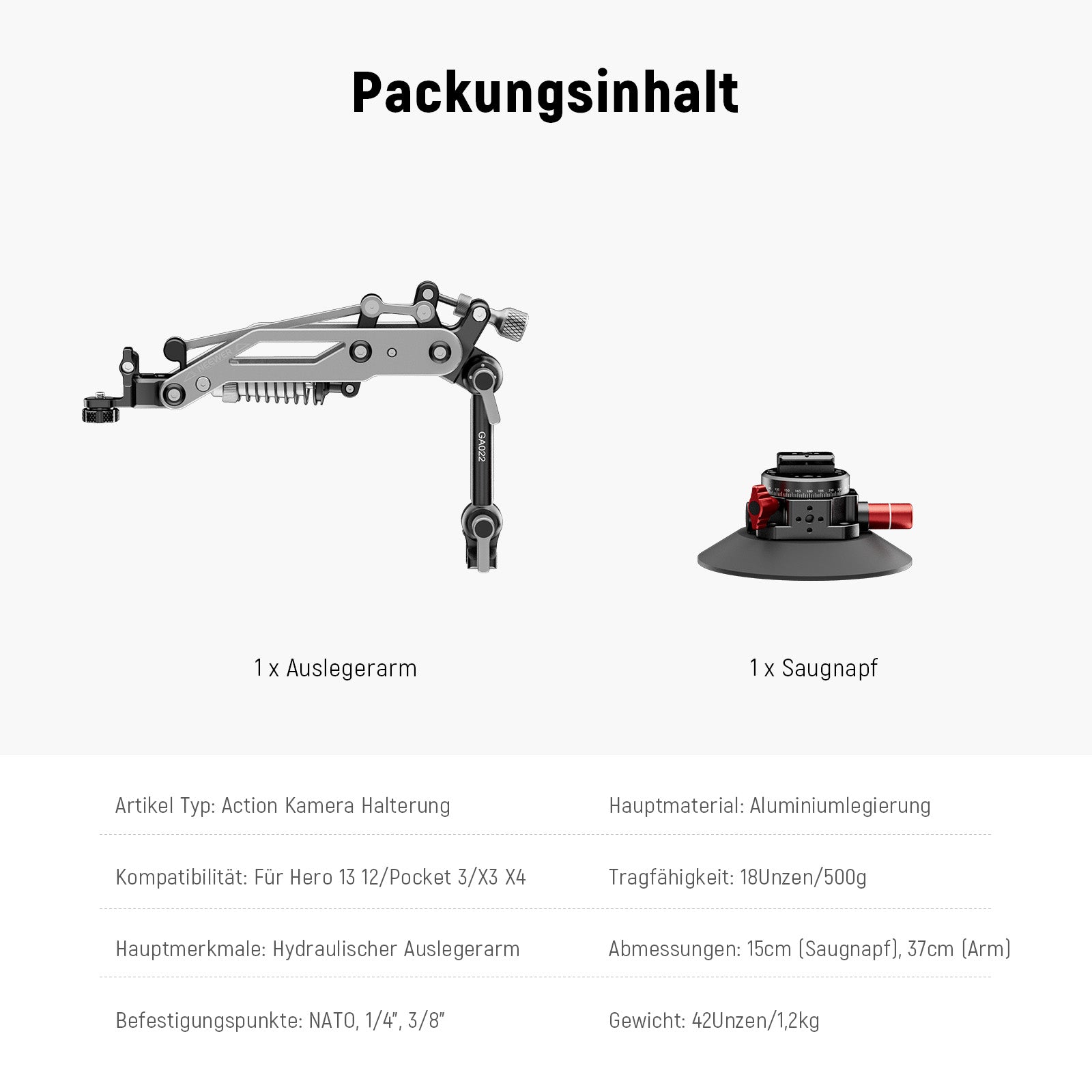 NEEWER GA022 Hydraulic Auslegerarm Saugnapf Autohalterung für GoPro 13 12 Pocket 3