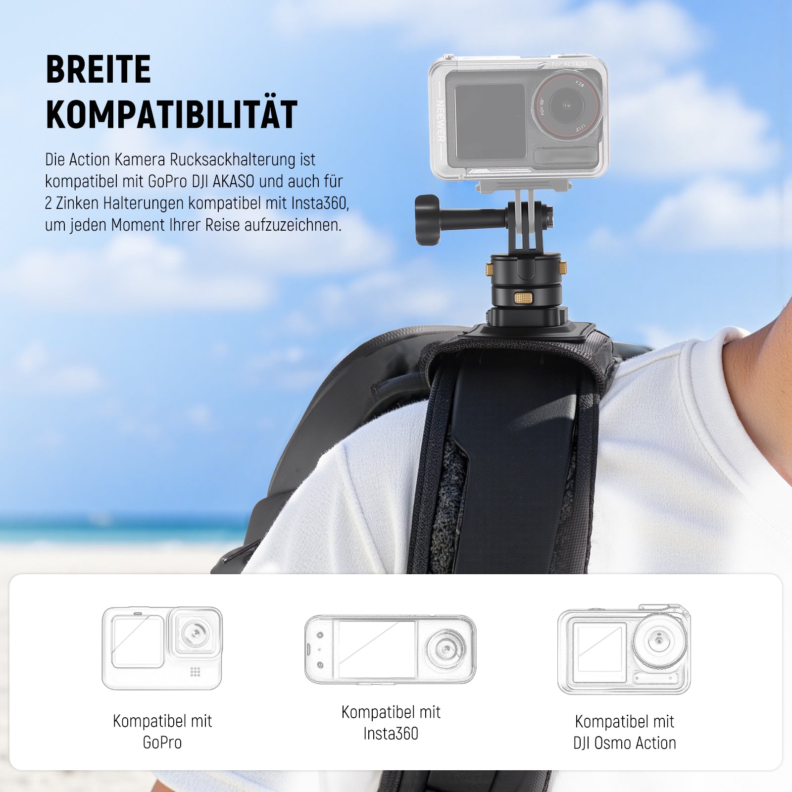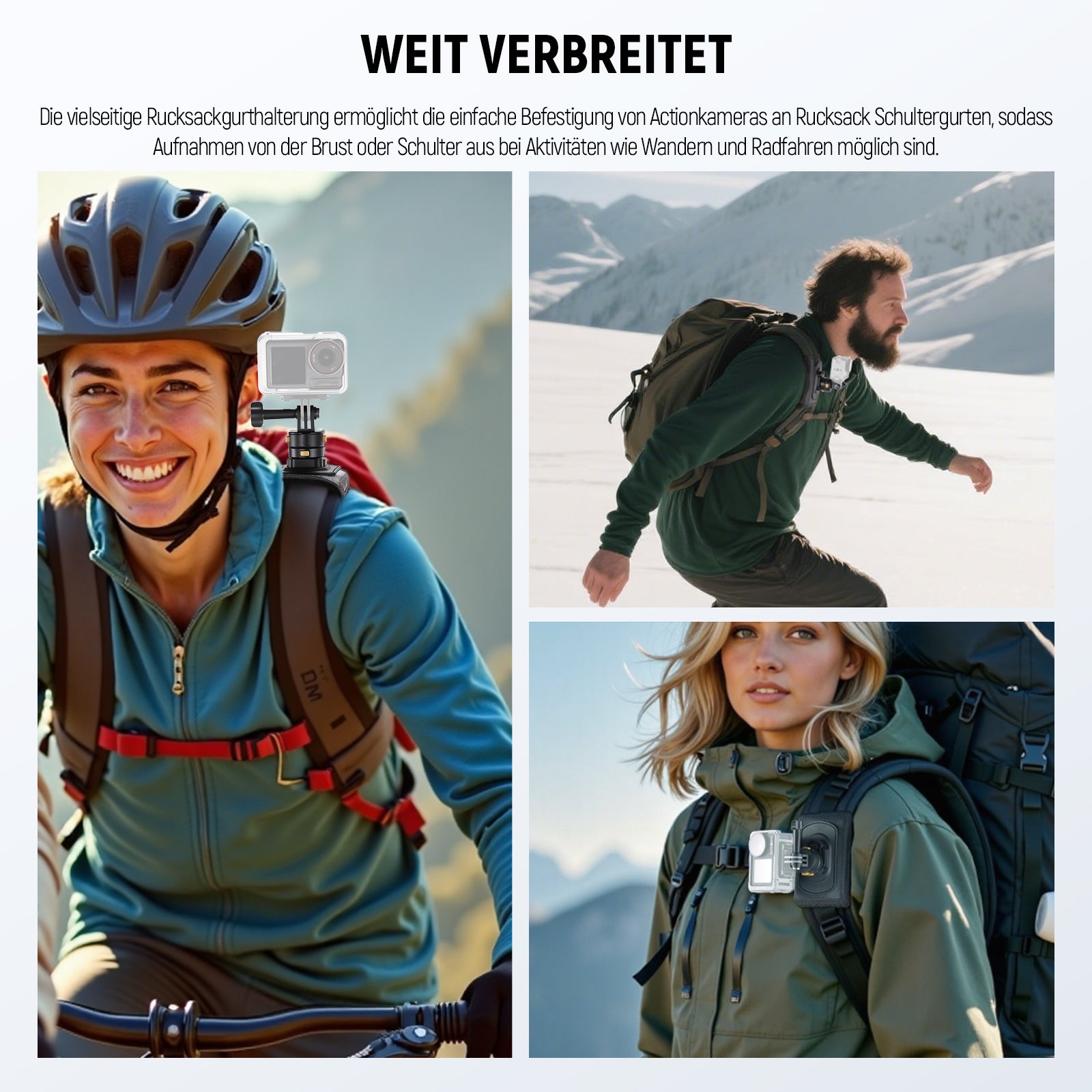 - Actionkamera Kompatibilität- Die Rucksackhalterung ist kompatibel mit GoPro Max go pro Hero 13 12 11 10 9 8 7 Black, kompatibel mit DJI Osmo Action 5 Pro 4 3 2, auch für 2 Punkt Halterungen, kompatibel mit Insta360 X5 X4 X3 Insta 360 Ace Pro und mehr, ideales Zubehörset und Befestigungspaket für Überkopfaufnahmen, Vlogging, Live Streaming, POV Videoaufnahmen im Freien und andere Foto und Videoaufnahmen als unverzichtbare Ausrüstung für Content Creator und Influencer