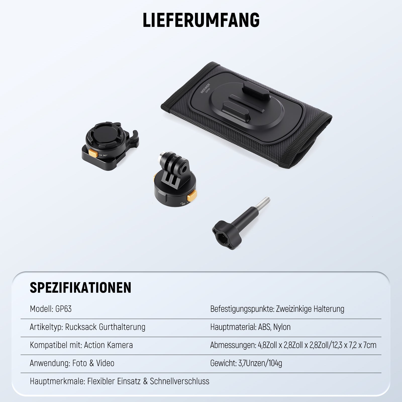 NEEWER GP-63 Rucksack Schulter Brustgurt Halterung für Actionkamera
