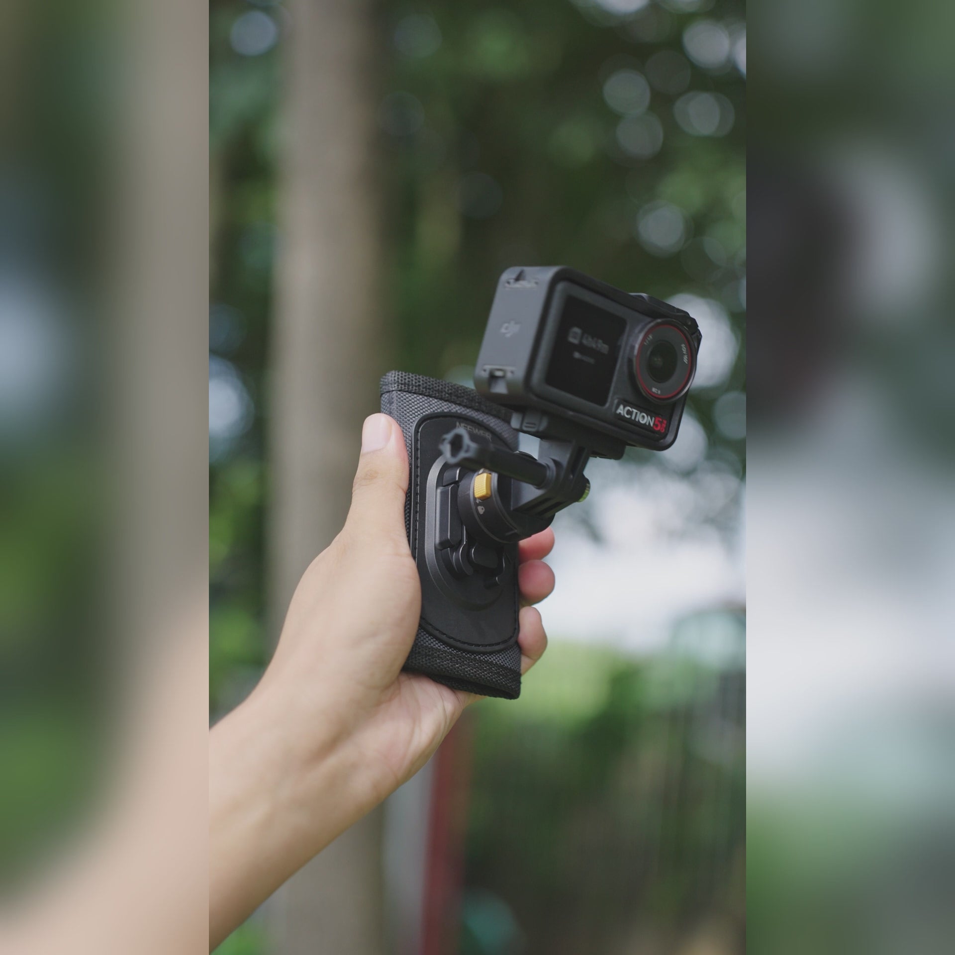 - Schnellverschluss und sicherheitsgarantie- Drücken Sie gleichzeitig die Schnellverschlussknöpfe auf beiden Seiten und drehen Sie die Halterung um 90°, um die Actionkamera abzunehmen. Das Doppelknopf Design verhindert ein versehentliches Lösen und bietet so optimalen Schutz für Ihre Ausrüstung