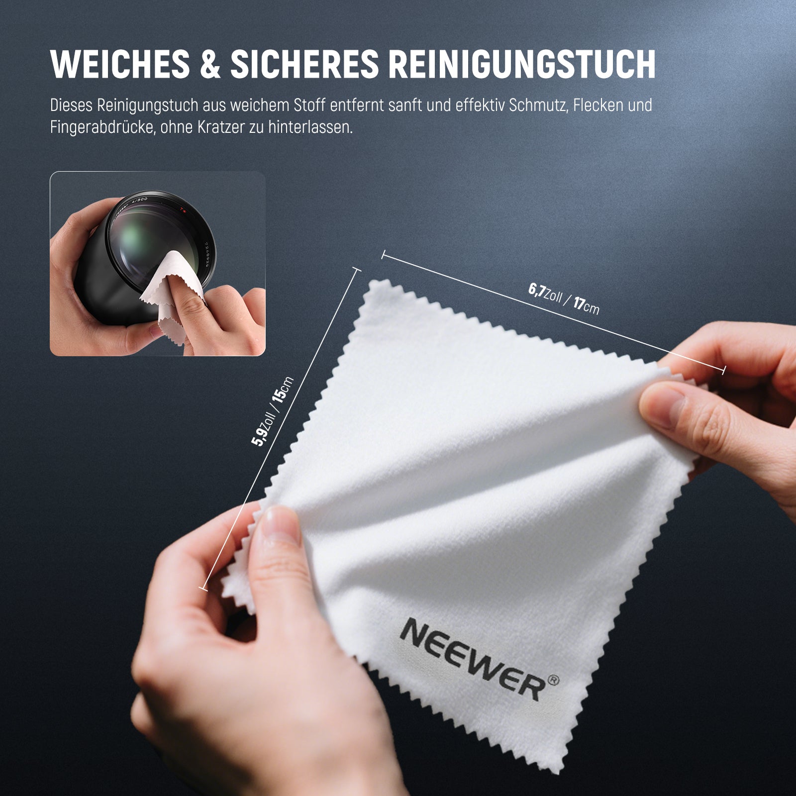 - Weiches und sicheres Reinigungstuch- Das aus weichem Stoff gefertigte Reinigungstuch entfernt sanft und effektiv Staub, Flecken und Fingerabdrücke, ohne Kratzer zu hinterlassen. Es eignet sich ideal für die Reinigung empfindlicher Oberflächen von Elektronikgeräten, Monitoren, Kameraobjektiven, Brillen, Uhren und Schmuck