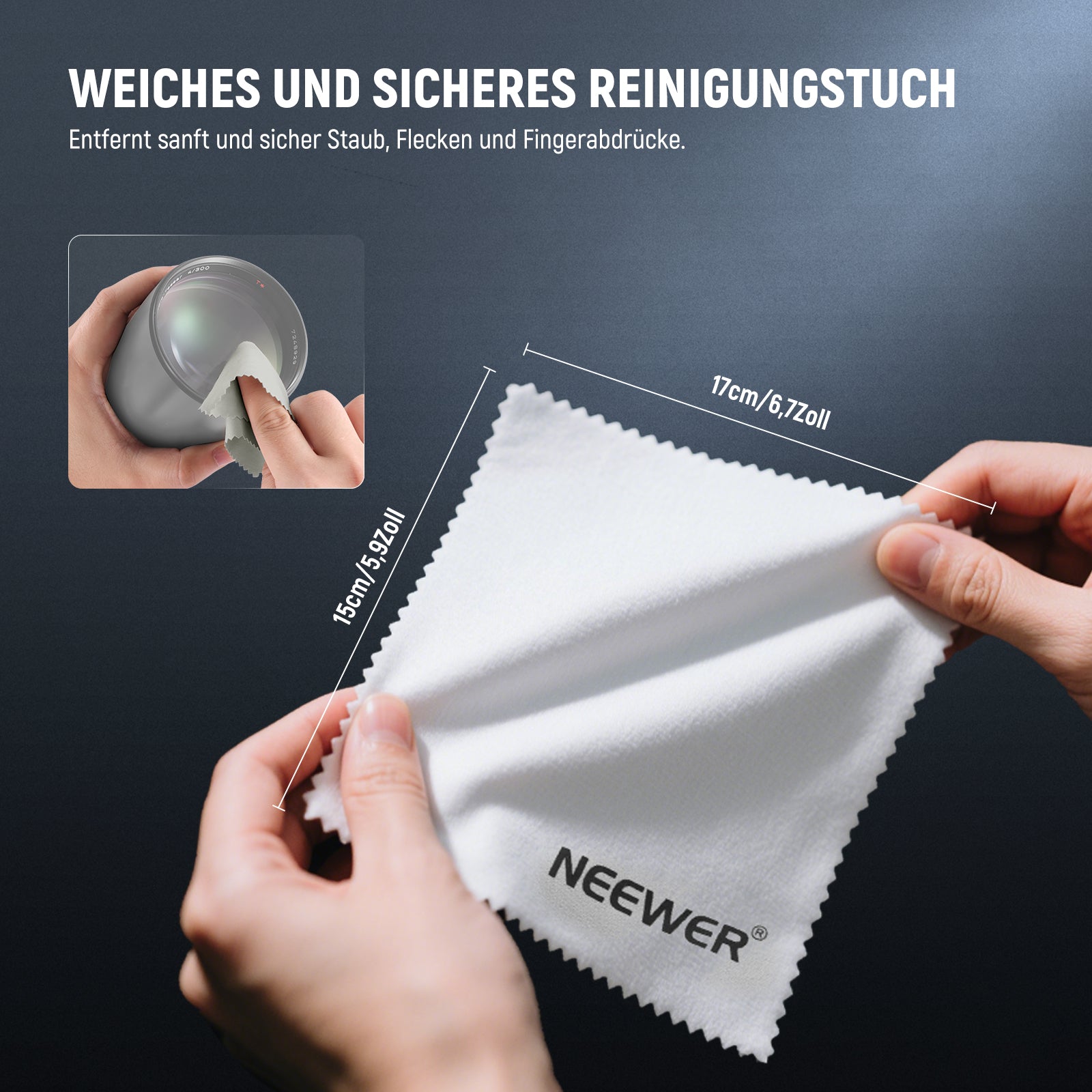 - Weiches und sicheres Reinigungstuch- Das aus weichem Stoff gefertigte Reinigungstuch entfernt sanft und effektiv Staub, Flecken und Fingerabdrücke, ohne Kratzer zu hinterlassen. Es eignet sich ideal für die Reinigung empfindlicher Oberflächen von Elektronikgeräten, Monitoren, Kameraobjektiven, Brillen, Uhren und Schmuck