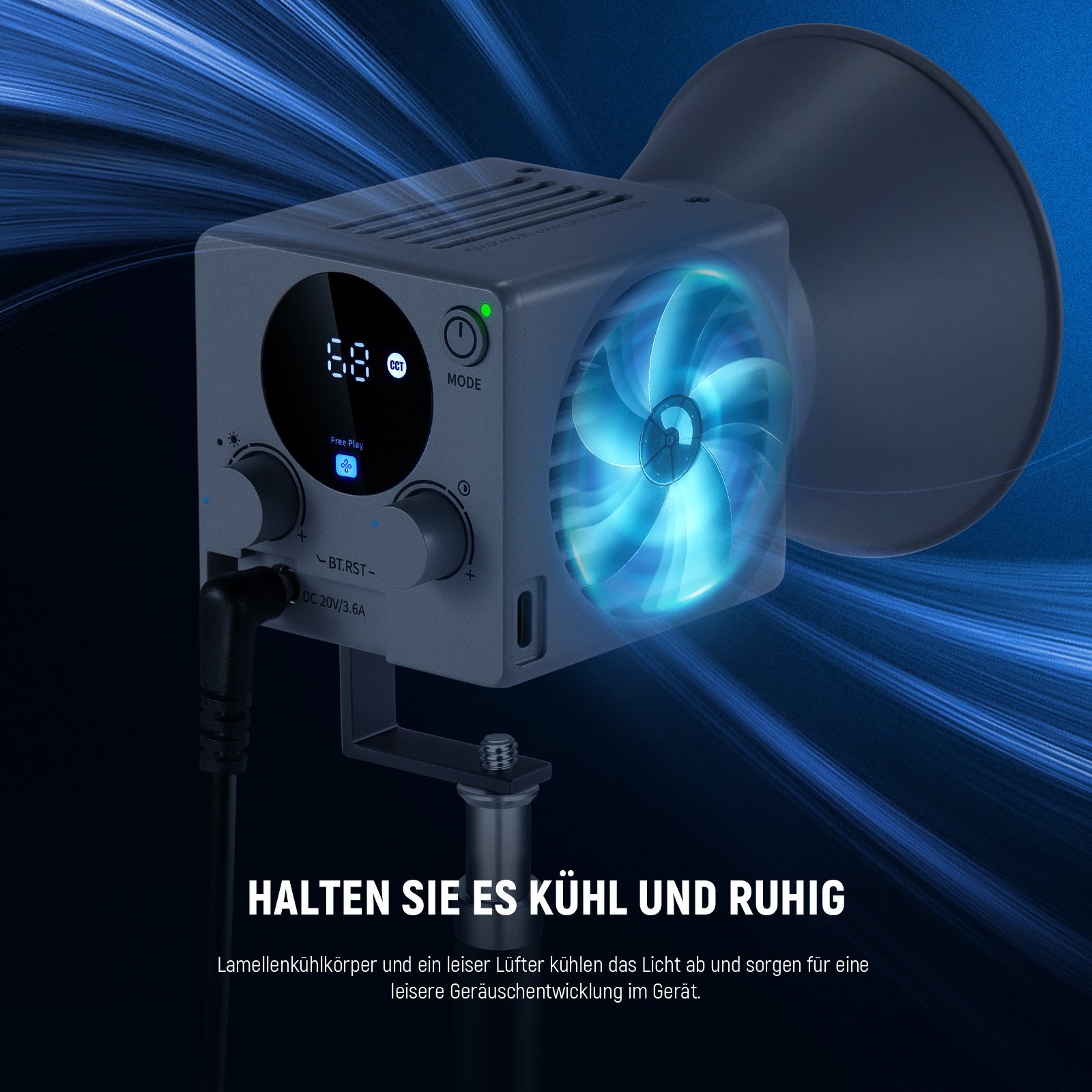 - Effizienter Überhitzungsschutz- Ein leiser Lüfter und hochwertige Kühlkörper bilden ein effizientes und geräuschloses Wärmeableitungssystem, das das Licht kühl und das Gerät für Videoaufnahmen ruhig hält