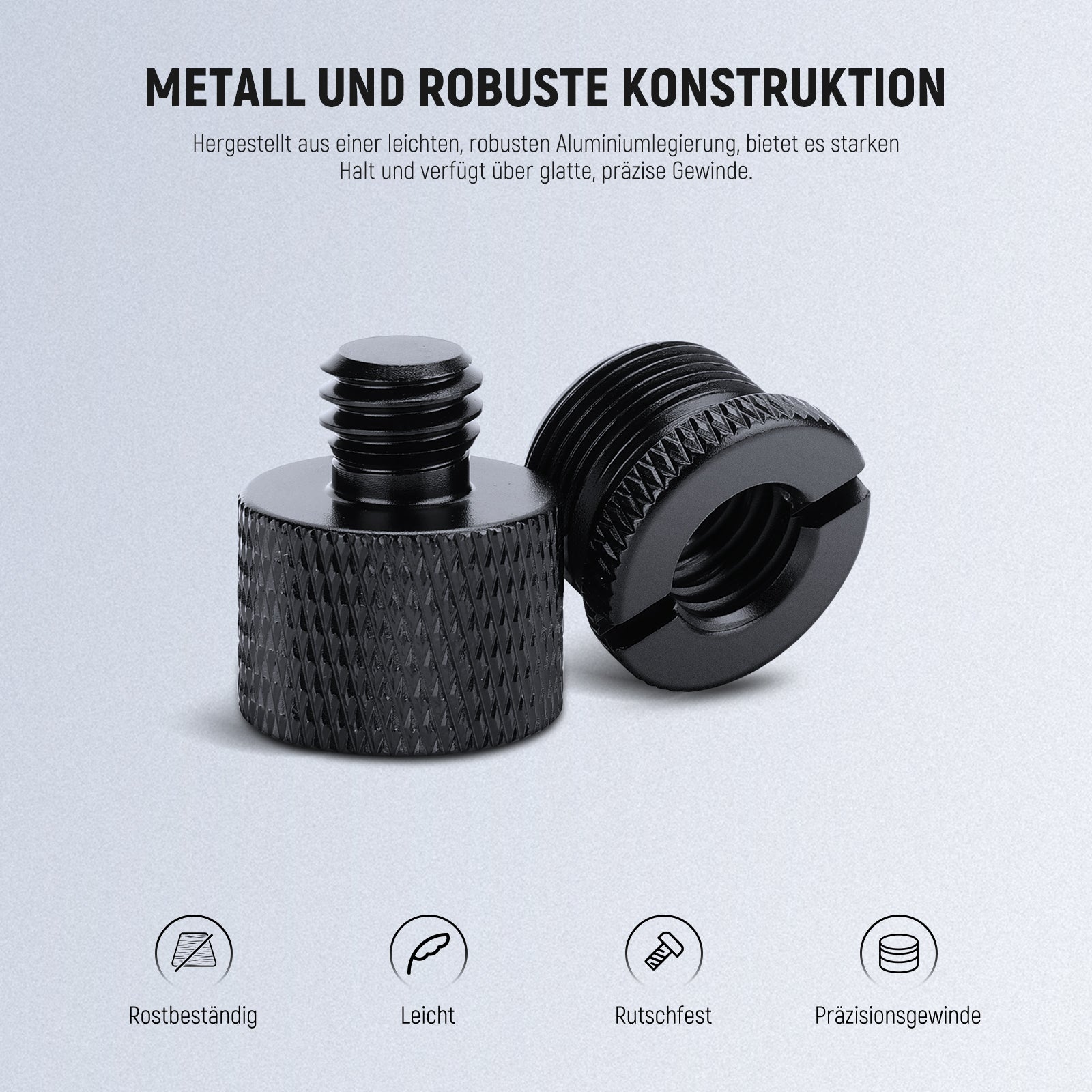 Metall und robuste Konstruktion- Diese Schraubenadapter sind aus einer leichten und dennoch robusten Aluminiumlegierung gefertigt und bieten eine solide Halterung mit glatten, präzisen Gewinden, die rost und lackbeständig sind. Ihr kompaktes Design gewährleistet eine sichere Befestigung von Mikrofonen oder Kameras und verbessert gleichzeitig die Kompatibilität mit anderen Geräten, was sie zu einem unverzichtbaren Fotografie Zubehör für Content Creator und Influencer macht