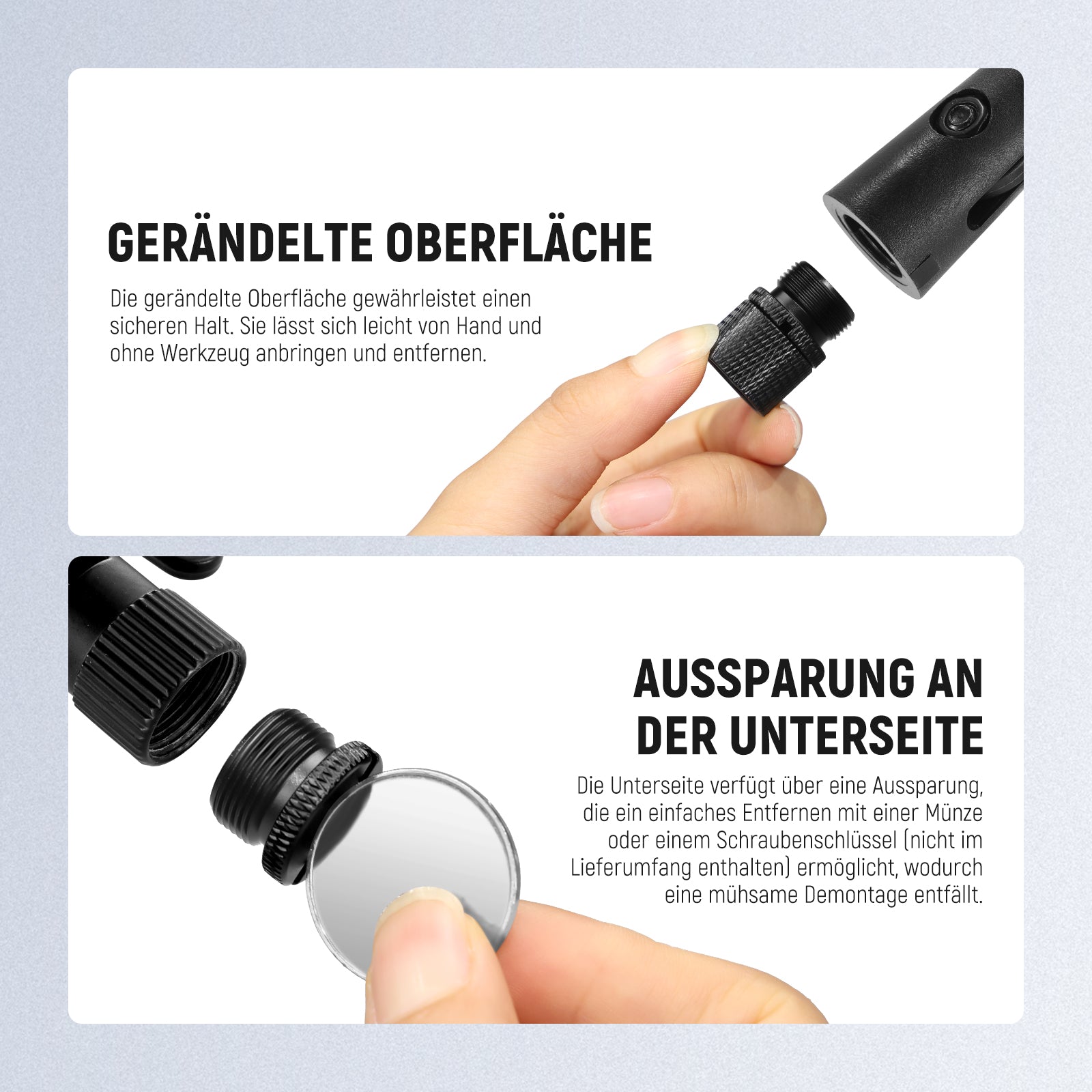- Gerändelte Oberfläche für handfestes Anziehen- Die Adapter 5/8Zoll Innengewinde auf 1/4Zoll Außengewinde und 5/8Zoll Innengewinde auf 3/8Zoll Außengewinde sind mit einer gerändelten Oberfläche versehen, die einen sicheren Halt gewährleistet. Dies ermöglicht eine einfache Montage und Demontage von Hand, sodass keine zusätzlichen Werkzeuge erforderlich sind