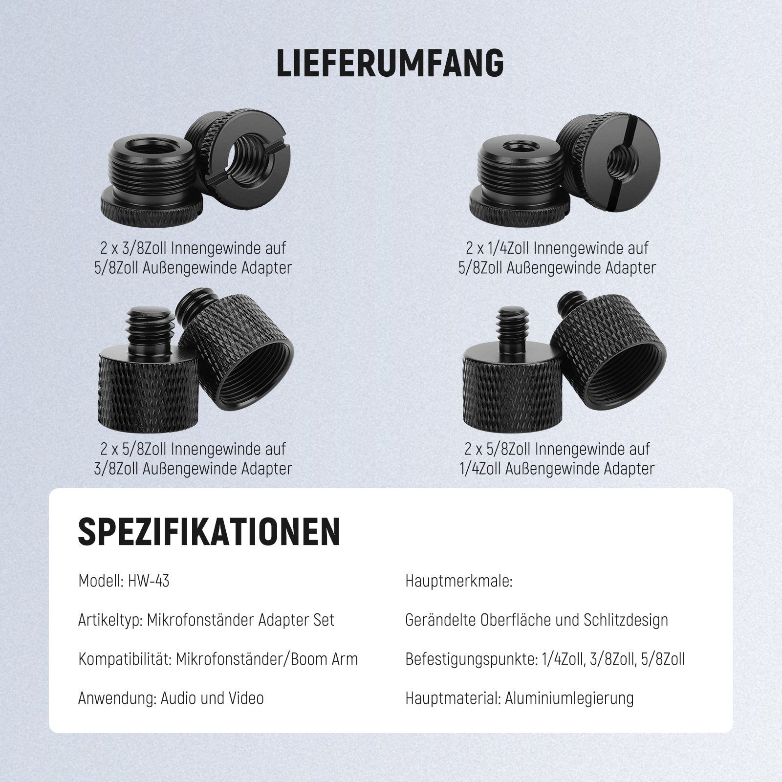 NEEWER HW-43 8er Pack Mic Stand Adapter Zubehörset