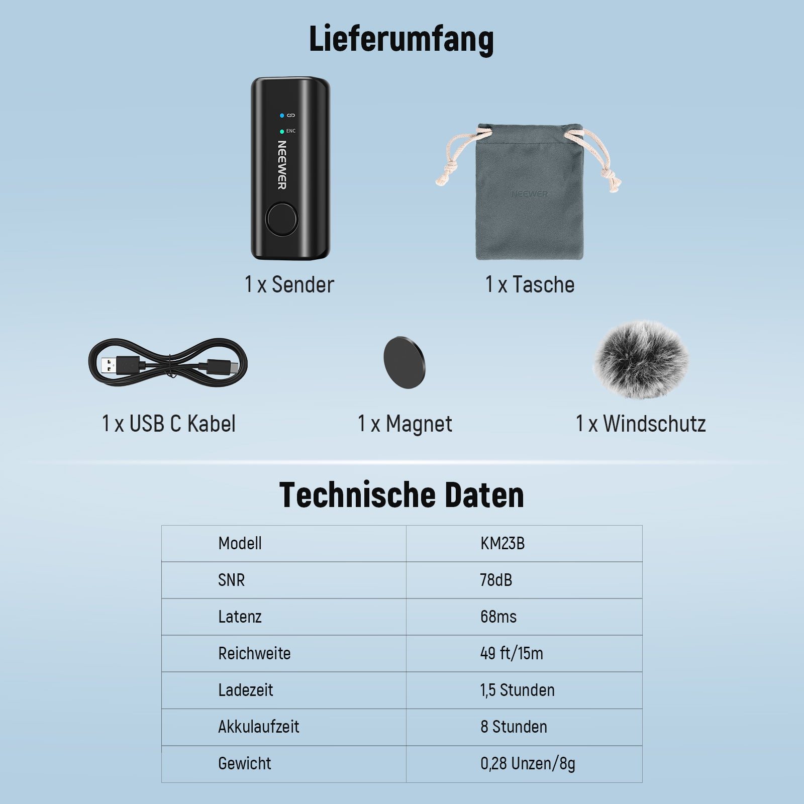 NEEWER KM23B Drahtloses Lavalier Mikrofon mit App Steuerung