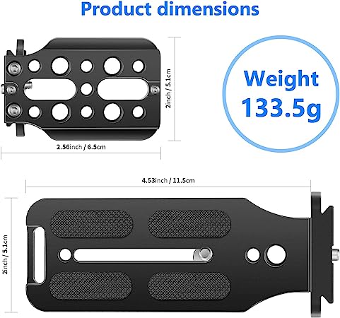 - Standard 1/4 Zoll Schrauben: Mit 1/4 Zoll Schrauben kann es für Gimbal Stabilisatoren wie DJI Osmo Ronin Zhiyun Smooth verwendet werden. perfekte Lösung für Instagram, vertikale Videoaufnahmen von IGTV; Hinweis: Keine der Platten hat 3/8 Schraubenlöcher.