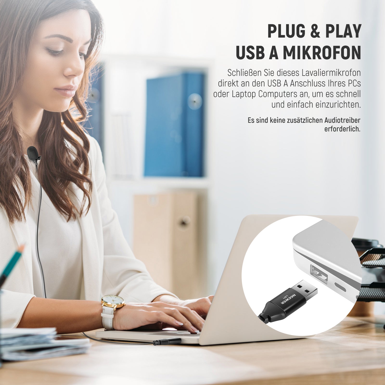 - 1 x USB Lavalier-Mikrofon