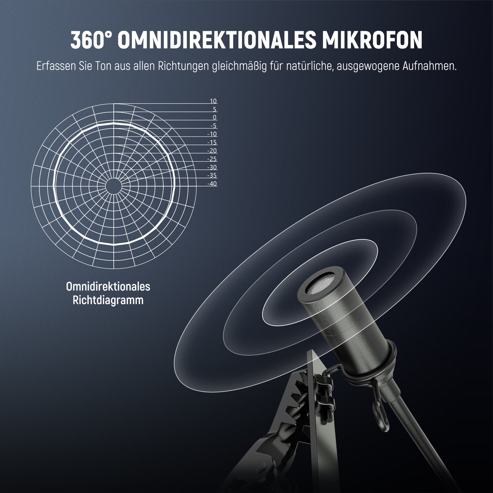 - Hauptmerkmale: Omnidirektionales Kondensatormikrofon