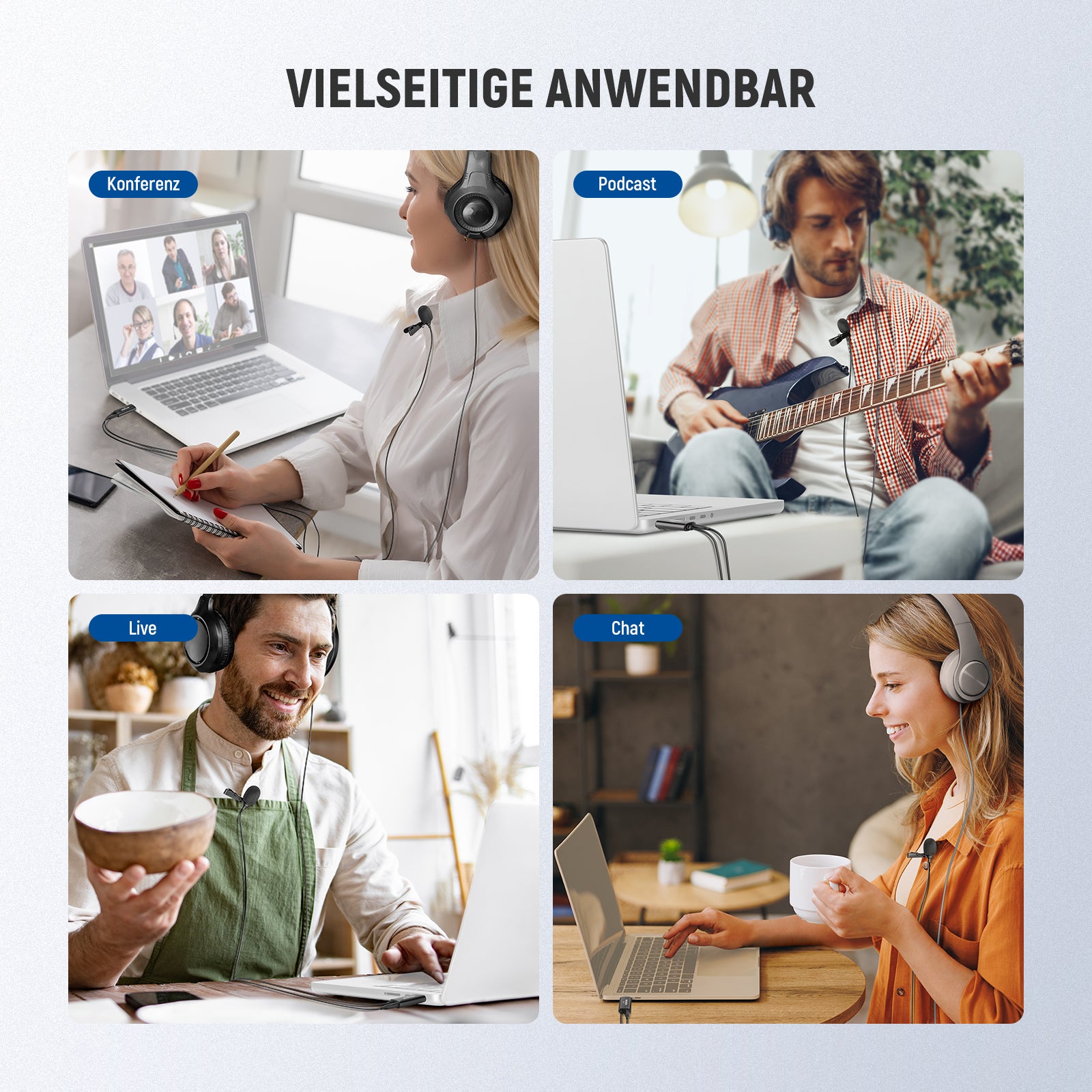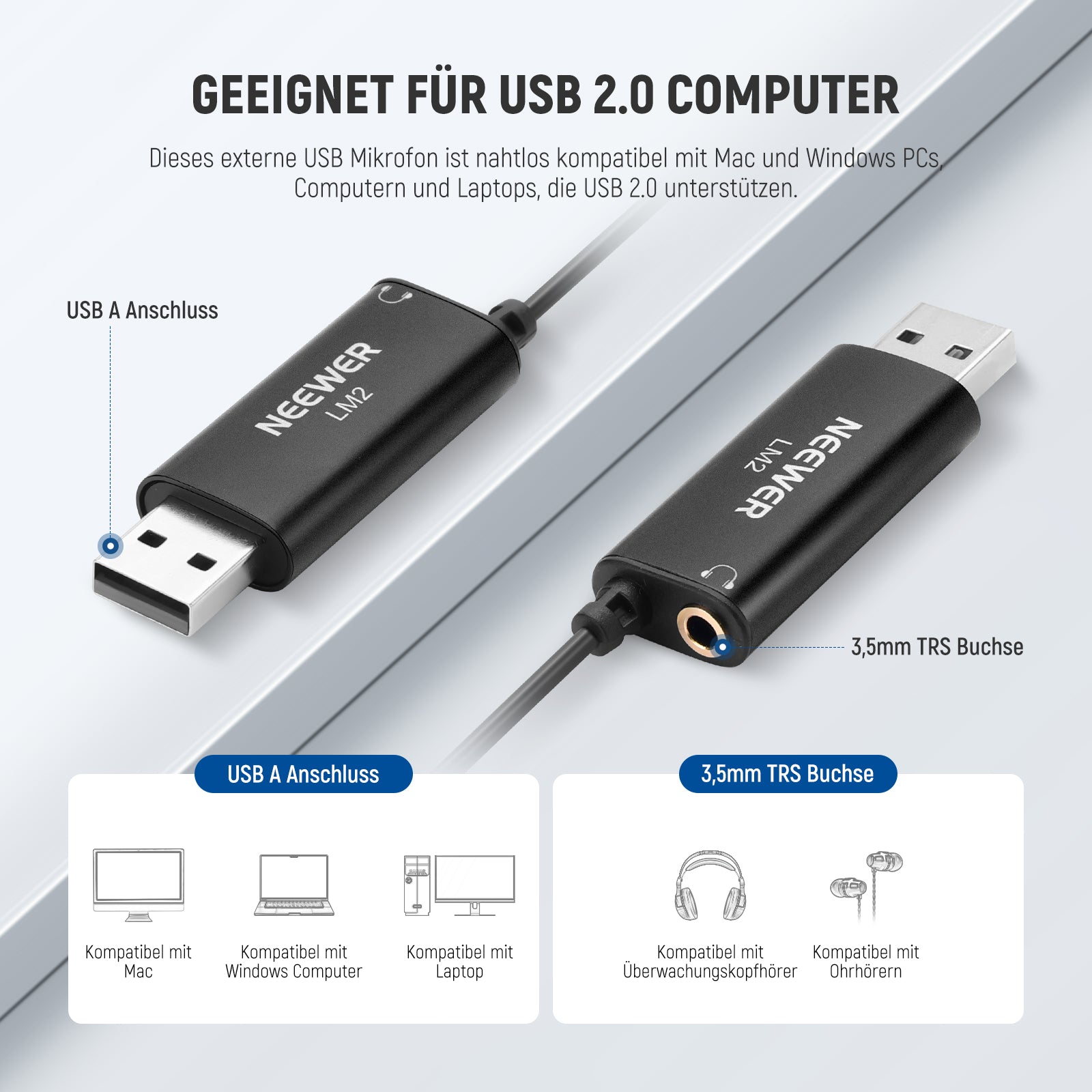 NEEWER LM2 Plug & Play USB Mini Lavalier Mikrofon mit 3.5mm TRS Jack