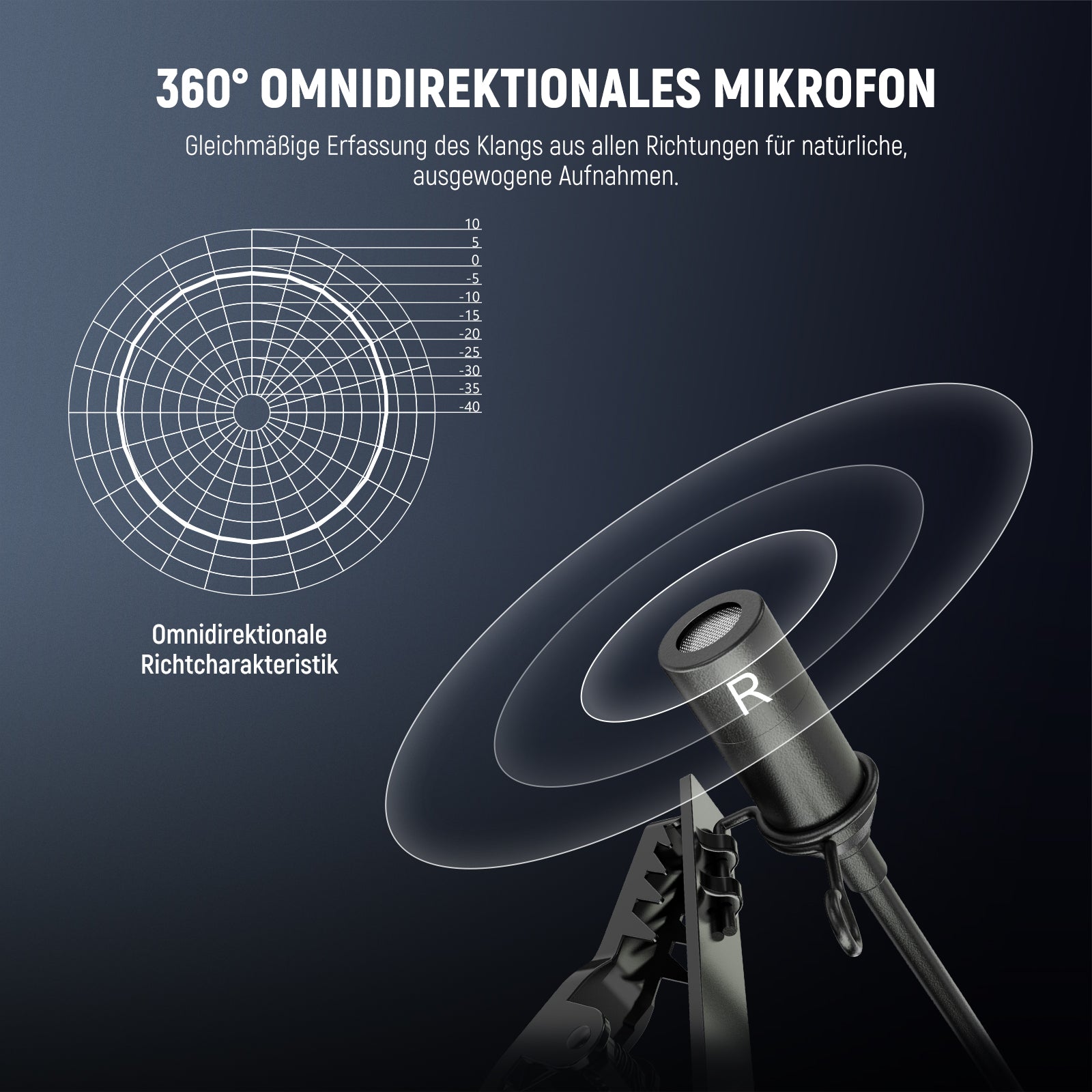 - 360° omnidirektionaler Kondensator- Diese Kondensator Mikrofone verfügen über ein hochempfindliches omnidirektionales 360° Aufnahmemuster für eine klare, scharfe und unkomprimierte Sprachaufnahme aus allen Richtungen