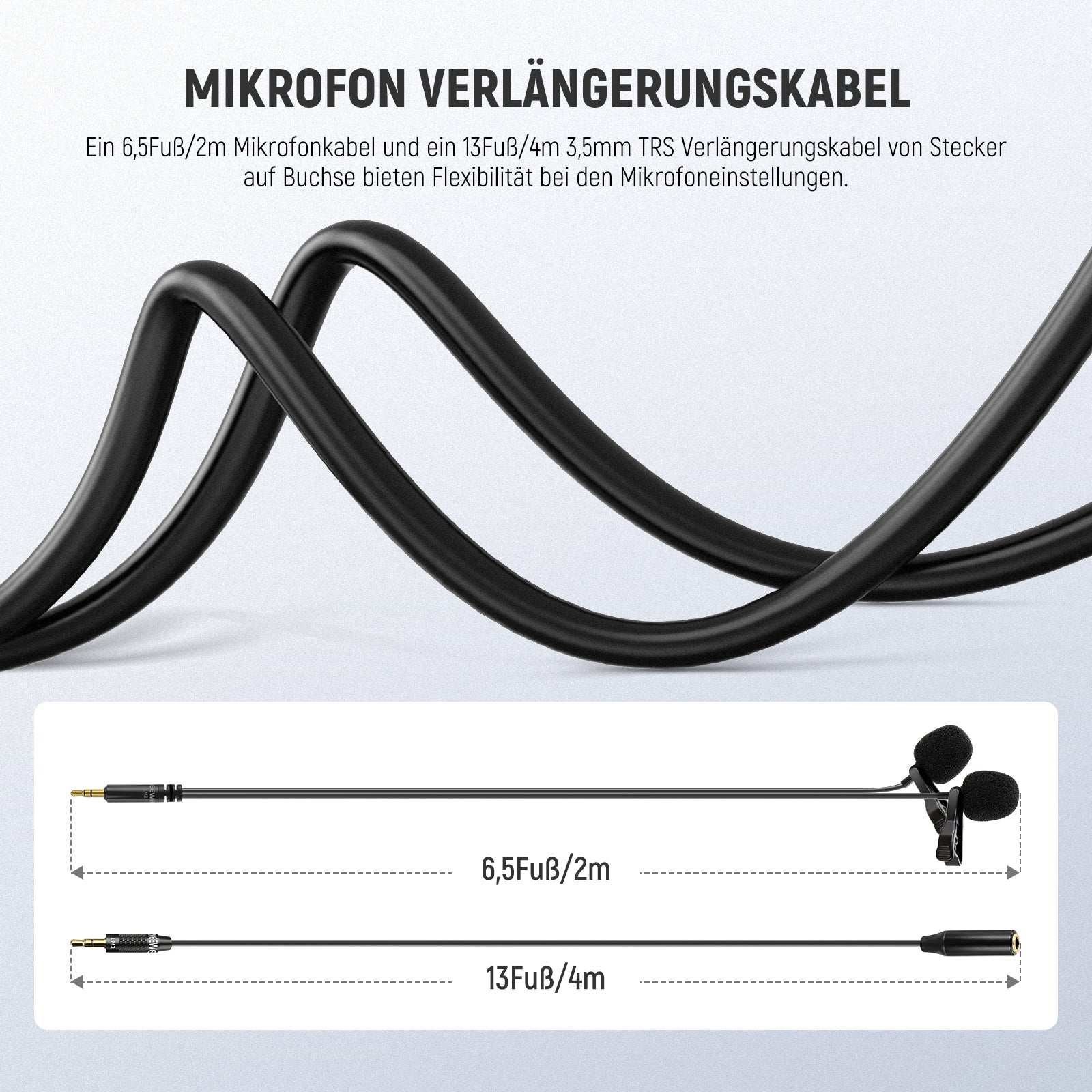 NEEWER LM3 Doppelkopf 3,5mm TRS Ansteckmikrofon mit 4m Verlängerungskabel