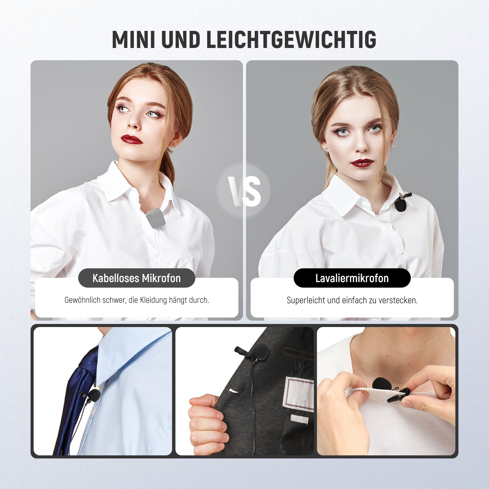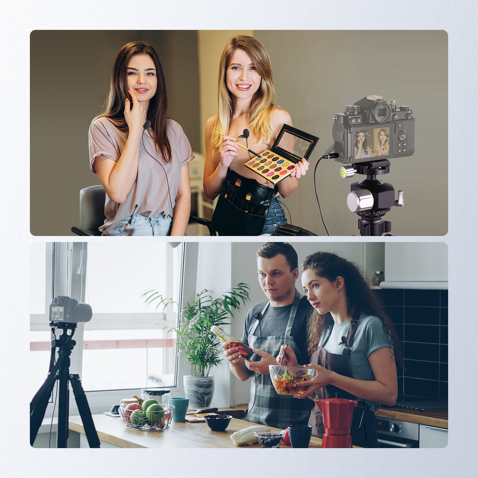 - Doppel Lavalier Mikrofon Set- Nehmen Sie den Ton von zwei Personen gleichzeitig auf, ideal für Interviews, YouTube Einsteiger Vlogs, TikTok Vlogging in sozialen Medien, Podcasts, Videoaufnahmen, Live Streaming oder jede Situation, in der zwei Tonquellen aufgenommen werden müssen