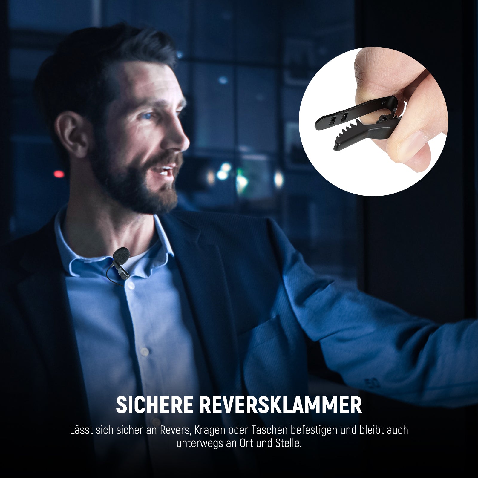 - Sichere und stabile Halsbandclips aus Metall- Befestigen Sie die winzigen tragbaren Mikrofone einfach mit abnehmbaren Clips an Kragen oder Hemdtaschen. Entfernen Sie die Clips, um das Mikrofon in der Hand zu verwenden oder es an Ihrem Körper zu befestigen