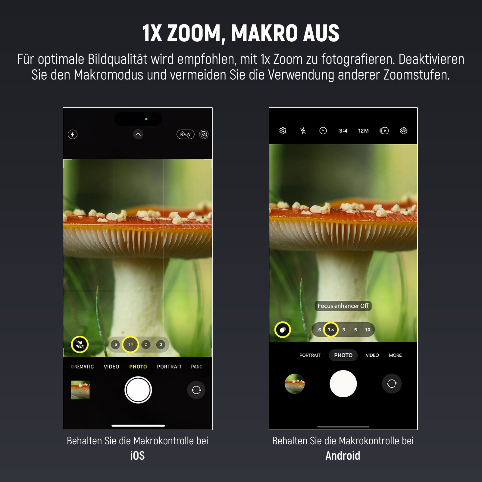 Stabil und leicht- Das Gehäuse aus schwarz eloxierter Aluminiumlegierung ist robust, rostbeständig und kratzfest für eine hervorragende Leistung auf lange Sicht. Hinweis: Reinigen Sie vor dem Gebrauch die Hauptkamera und die Zusatzkameras Ihres Telefons. Je nach Handymodell kann es zu Vignettierungen kommen. In diesem Fall ziehen Sie bitte das Objektiv fest oder zoomen Sie die Kameravergrößerung auf 1,1x
