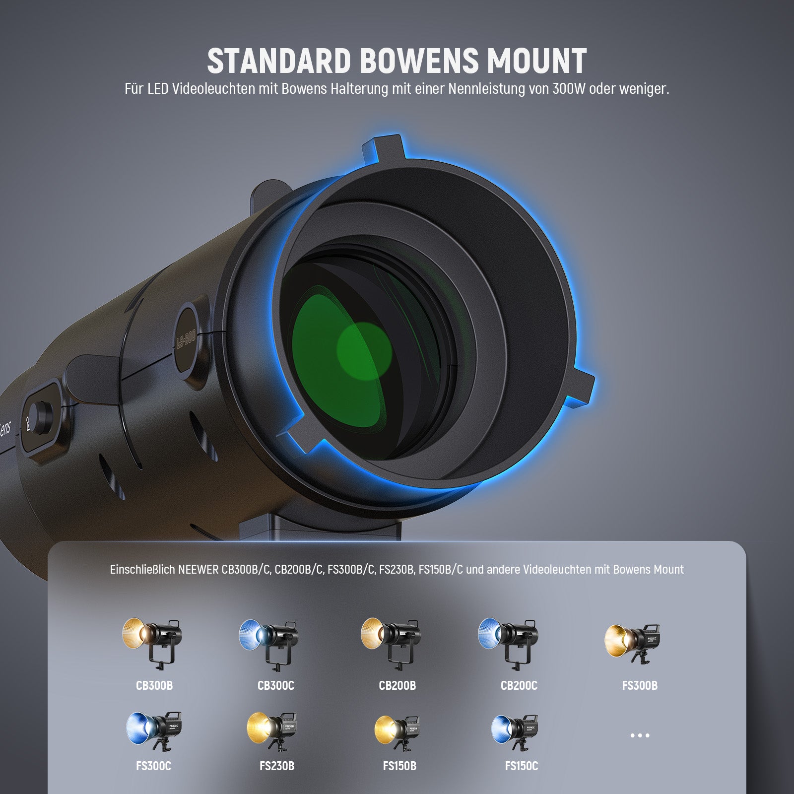 NEEWER LS-300 19° Spotlight Optischer Snoot für 300W Bowens Mount LED Videoleuchten