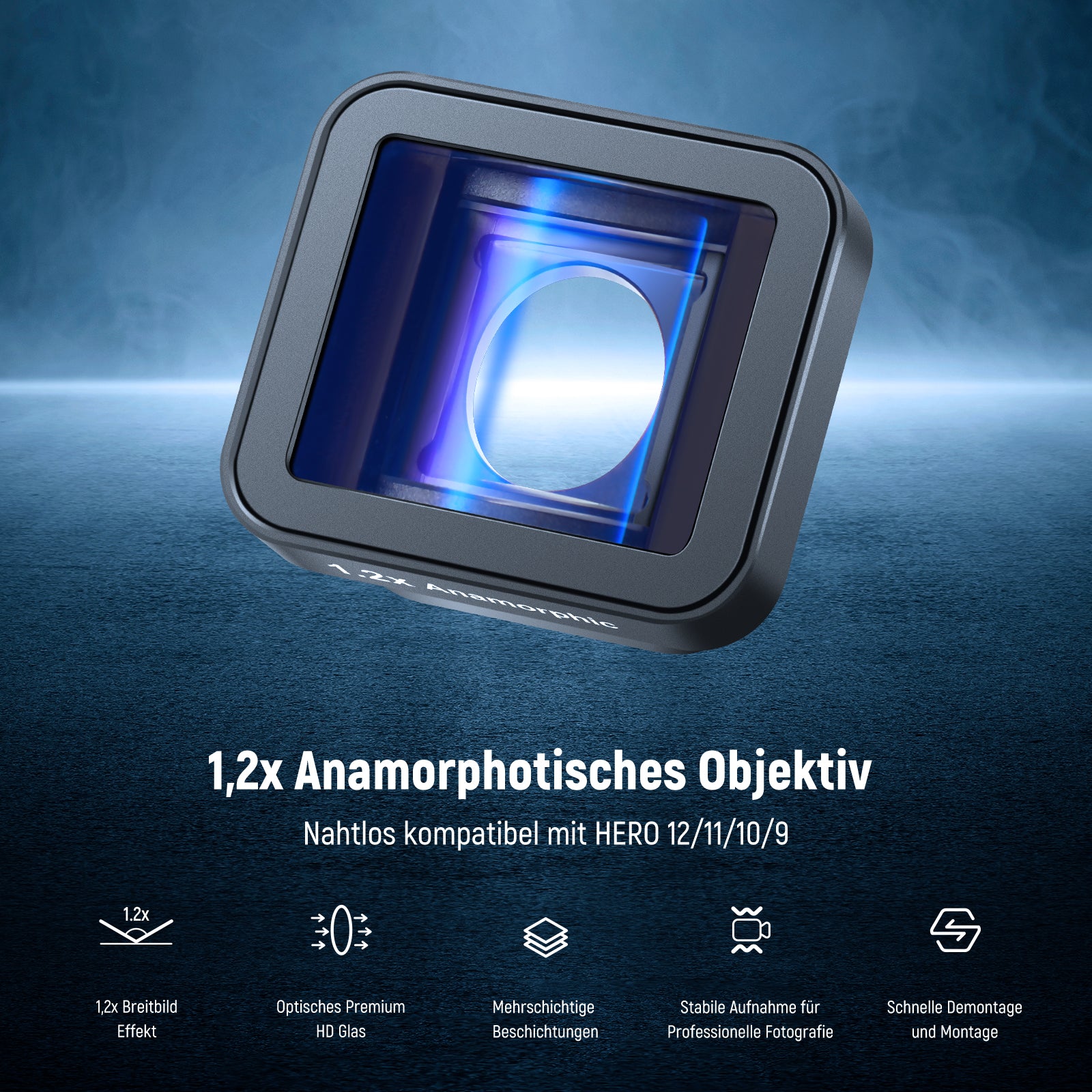 NEEWER LS-56 1,2X Anamorphotisches Objektiv kompatibel mit GoPro Hero 12 11 10 9