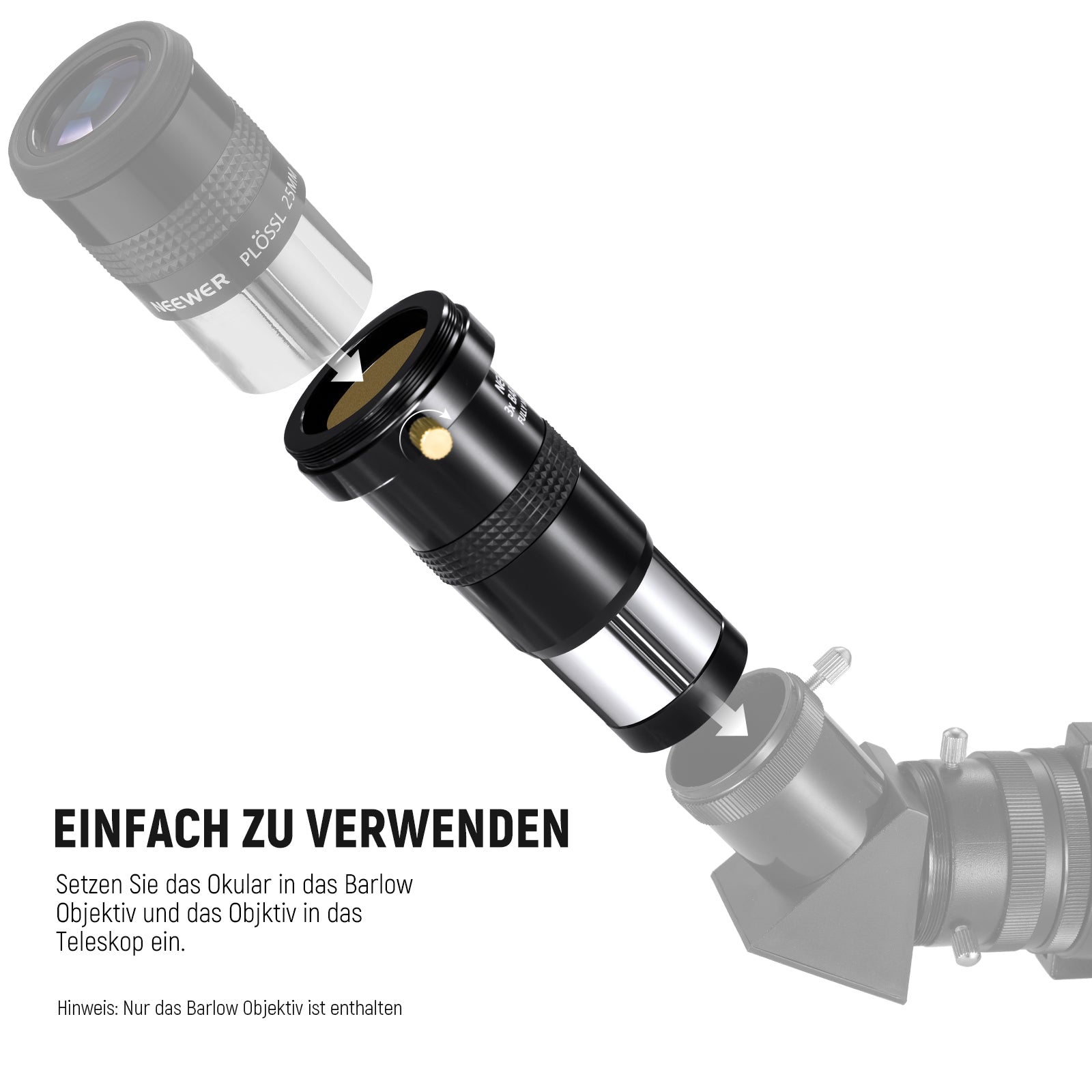 NEEWER LS-T11 3X Barlow Objektiv für 1,25" Teleskop Okular