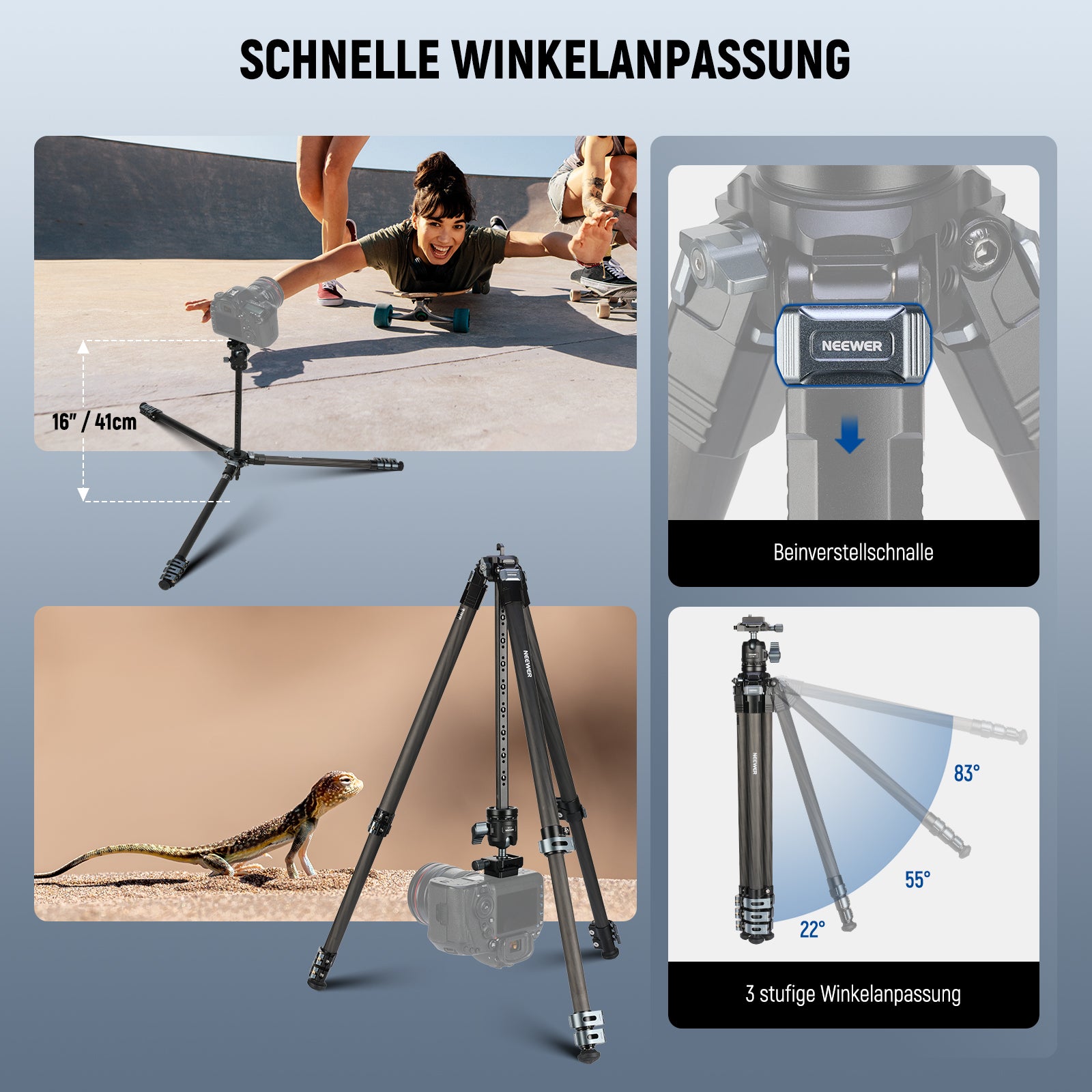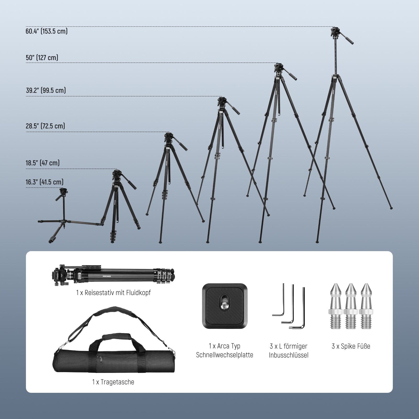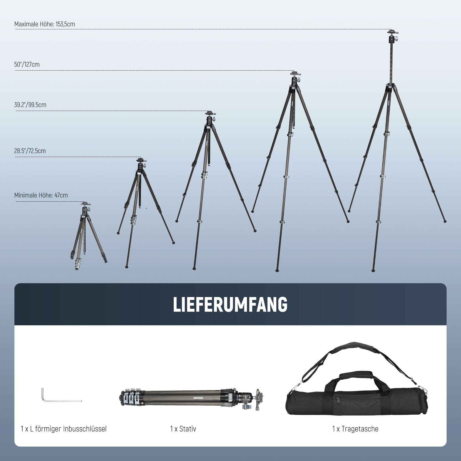 NEEWER LT36/LT37 154cm Reisestativ aus Carbonfaser