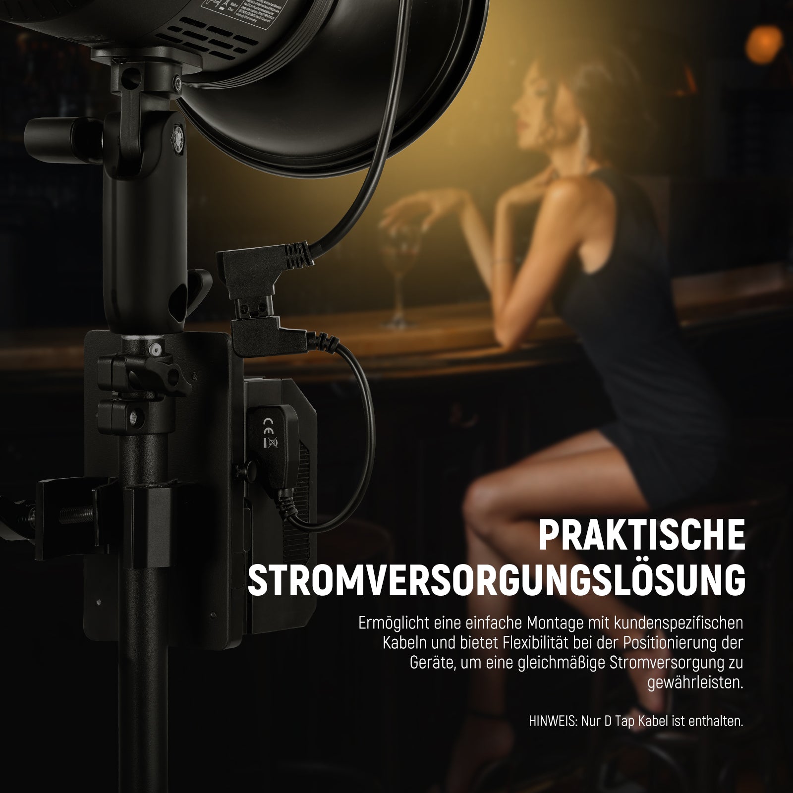 - Kompatibilität: LED-Leuchten/V-Mount-Batterien