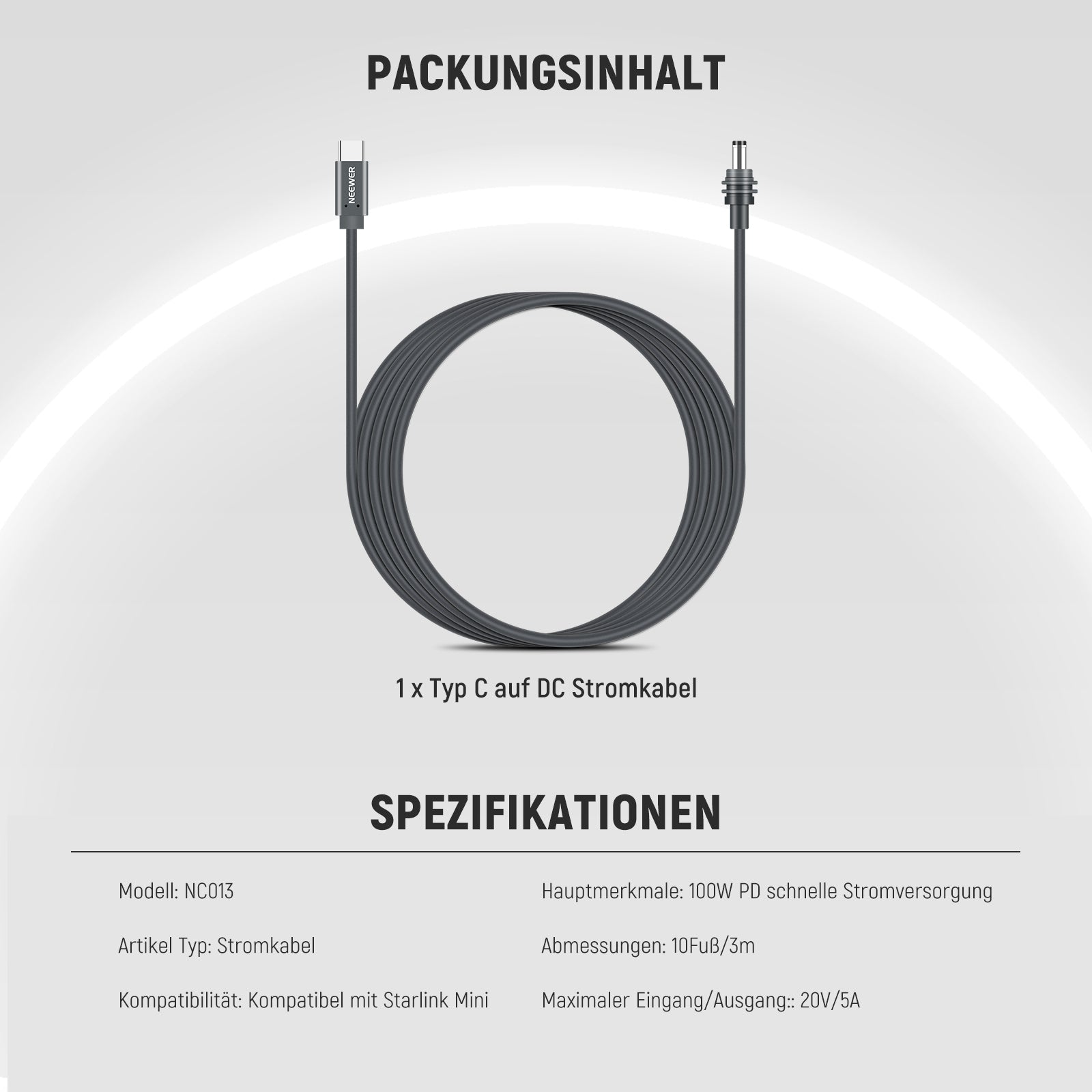 NEEWER NC013 100 W PD USB C auf DC Stromkabel für Starlink Mini
