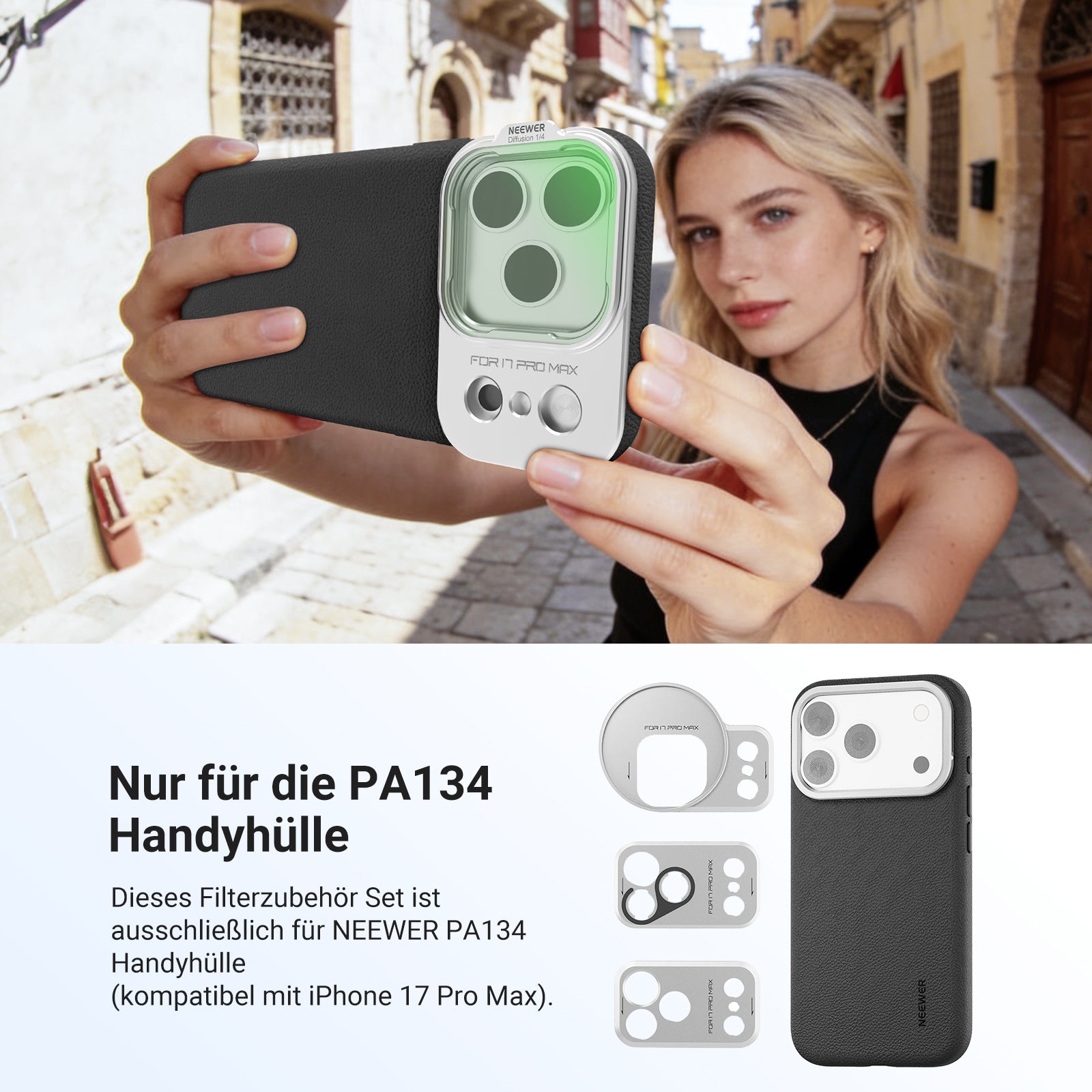 - 【Nur für PA134 Smartphone Case】 Dieses Filterzubehör Set ist ausschließlich für NEEWER PA134 Handyhülle als unverzichtbares Fotografie Zubehör für Content Creator und Influencer, um mobile Fotografie, Vlogging mit der Handykamera und Filmaufnahmen einzusetzen