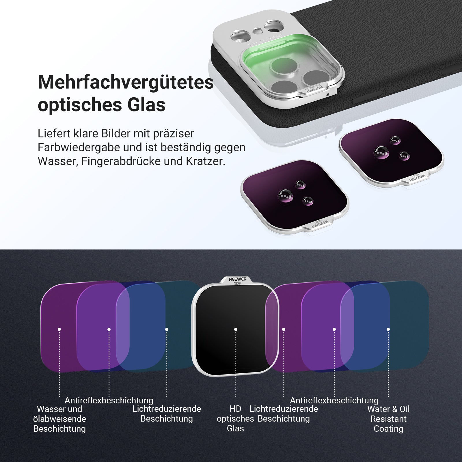 【Mehrfachvergütetes optisches Glas】 Liefert klare Bilder mit präziser Farbwiedergabe und ist resistent gegen Wasser, Fingerabdrücke und Kratzer. Enthält zudem ein Reinigungstuch und eine tragbare Aufbewahrungstasche