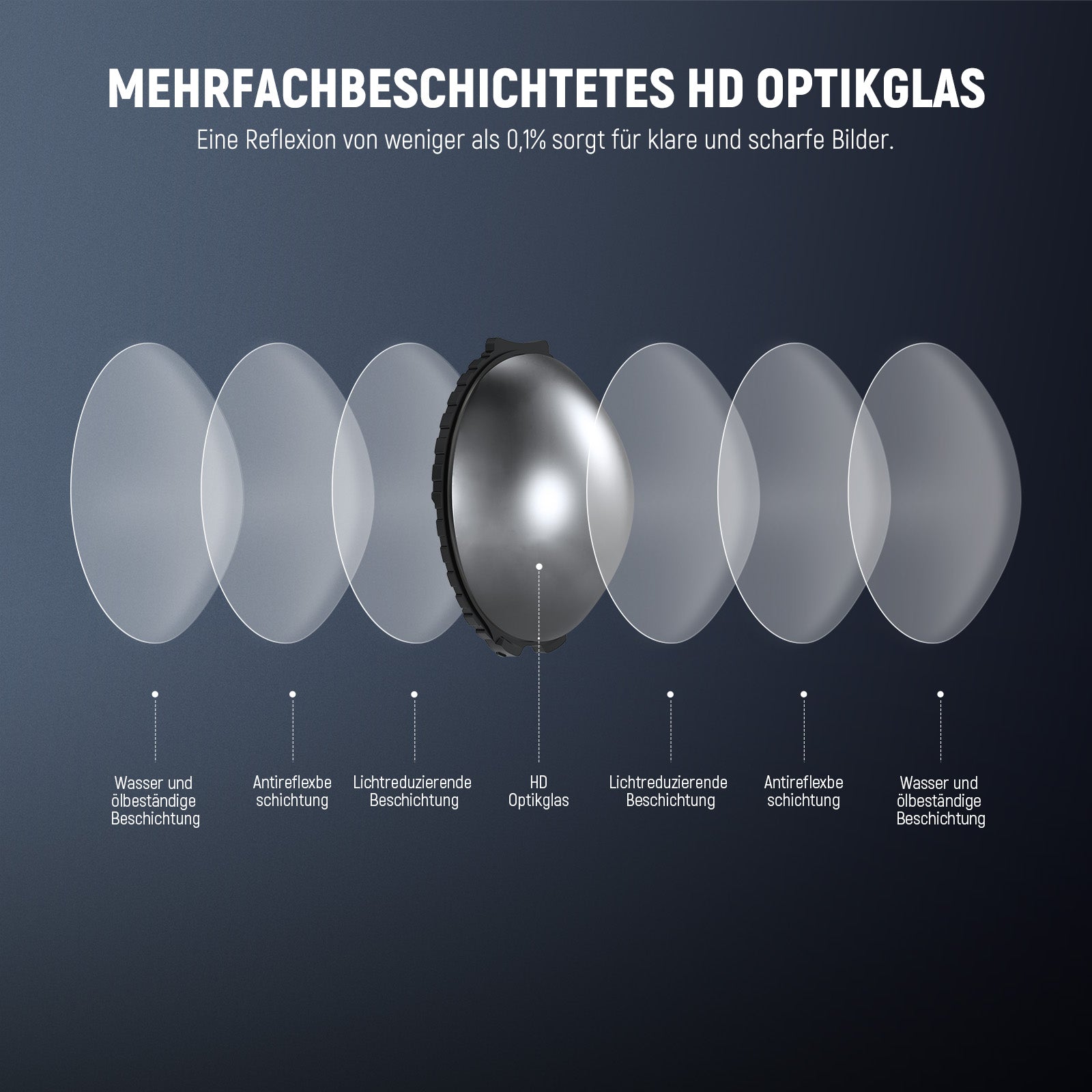 - Mehrfachvergütetes optisches Glas- Hochfestes, gehärtetes Glas liefert gestochen scharfe Aufnahmen und ist gleichzeitig widerstandsfähig gegen Wasser, Staub, Fingerabdrücke und Kratzer. Im Lieferumfang enthalten sind eine tragbare Tasche und ein Reinigungstuch