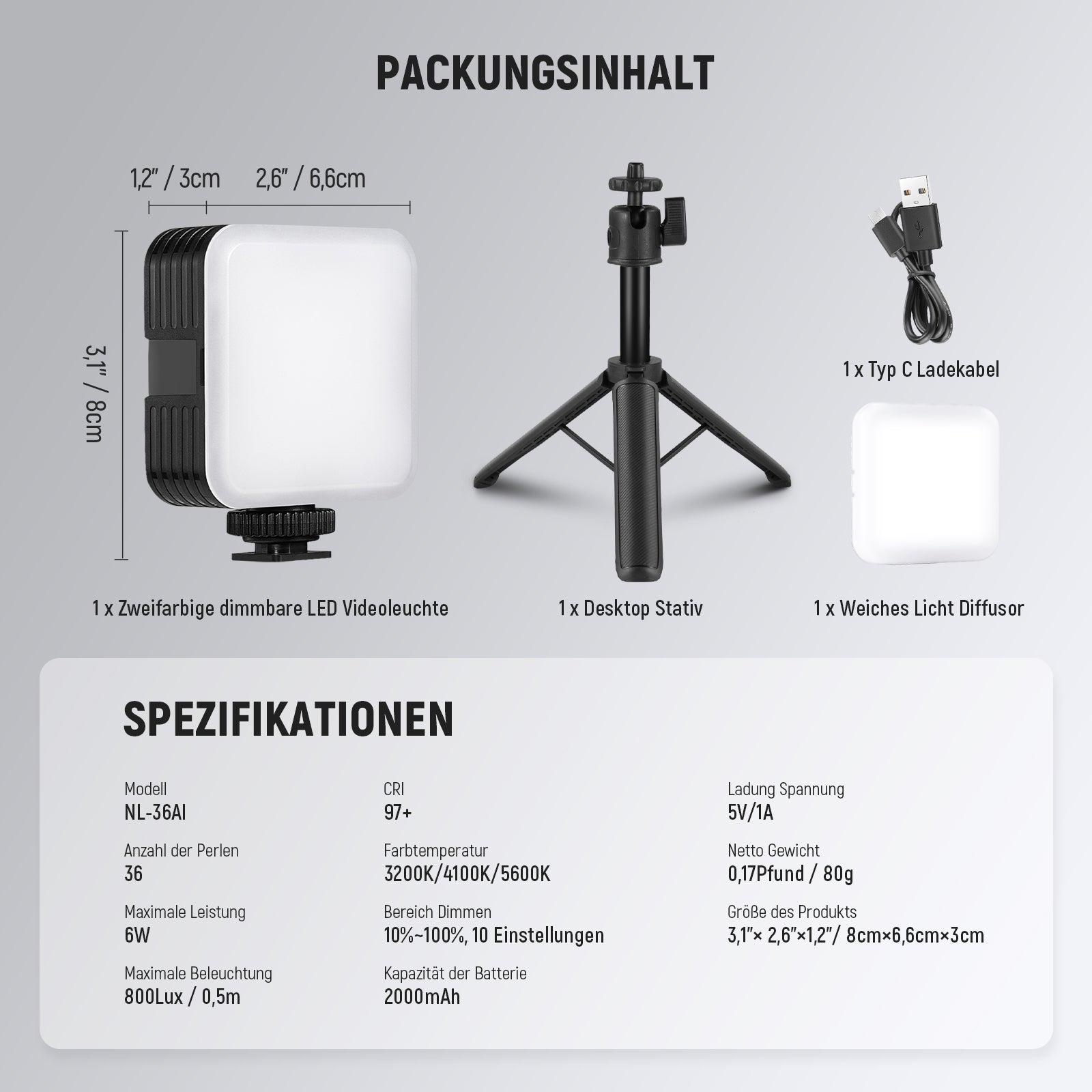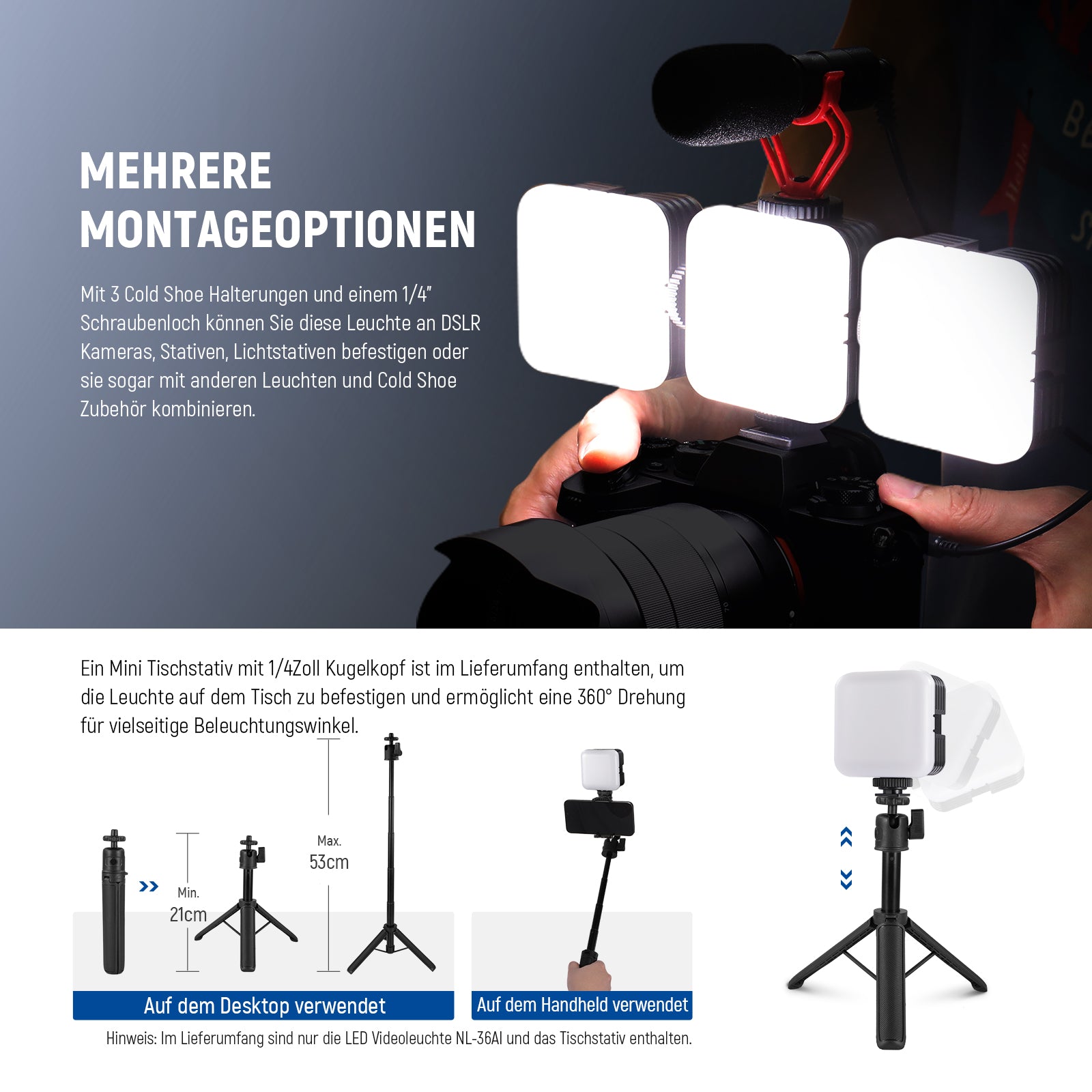 NEEWER NL-36AI LED Kamera Videolicht mit Tischstativ