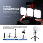 Mehrfach kombinierbar und leicht zu tragen- Mit den Abmessungen 8x6,5x0,3cm kompakt und leicht zu tragen. Ein Cold Shoe montage Adapter mit 1/4" Innengewinde an der Unterseite ermöglicht die Montage des streaming Lichts an Kameras oder Stativen. 3 Cold Shoe Halterungen an beiden Seiten und oben ermöglichen die Montage von Mikrofonen und anderem Fotozubehör. Ein Mini Tischstativ mit 1/4" Kugelkopf wird mitgeliefert, um Studiolicht auf Tischplatte zu halten, und ermöglicht eine 360° Drehung