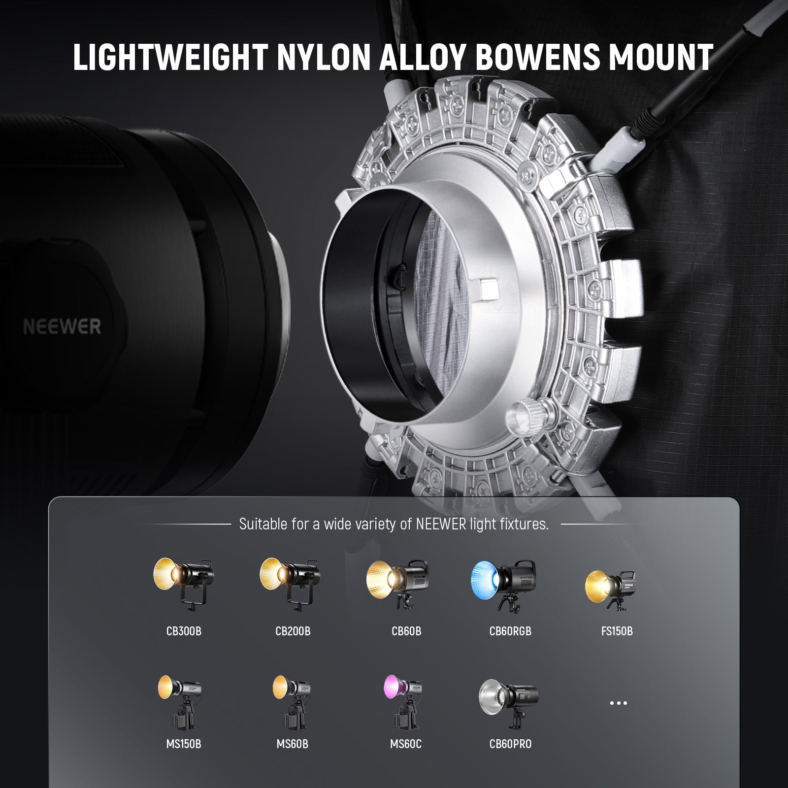- 【Befestigung über Bowens Halterung】 Dieser Fotografie Softbox Diffusor mit Standard Bowens Halterung ist mit verschiedenen Studiobeleuchtungsgeräten, Blitzgeräten, Blitzgeräten, Monolights und COB LED Videoleuchten mit Dauerausgang kompatibel, einschließlich NEEWER Vision 4 Q4 CB300B CB200B FS150B CB100C MS150B MS60C MS60B CB60 RGB S101 -300W/400W PRO, kompatibel mit Aputure 300c 200X 60D 60x S, kompatibel mit Godox SL60w, kompatibel mit SmallRig RC 120D RC 120B usw