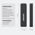 • Abmessungen: 2,6" x 0,6" x 0,4" / 65 x 16 x 9 mm
