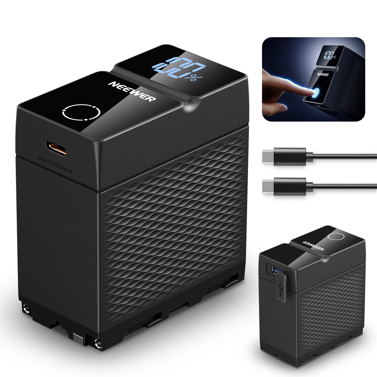 - Aufgerüstet mit Smart OLED Touchscreen- Der NW-F970U usb c npf-Akku ist mit einem intelligenten OLED Touchscreen ausgestattet, der die genaue Überwachung der verbleibenden Leistung in Echtzeit durch einfaches Antippen ermöglicht. Im Vergleich zu herkömmlichen LED Anzeigen bietet die OLED Anzeige eine klarere und präzisere Leistungsanzeige. Sie blinkt auch automatisch, um Sie im Falle von Überlast, Überstrom, Überspannung, Überhitzung und anderen elektrischen Problemen zu warnen