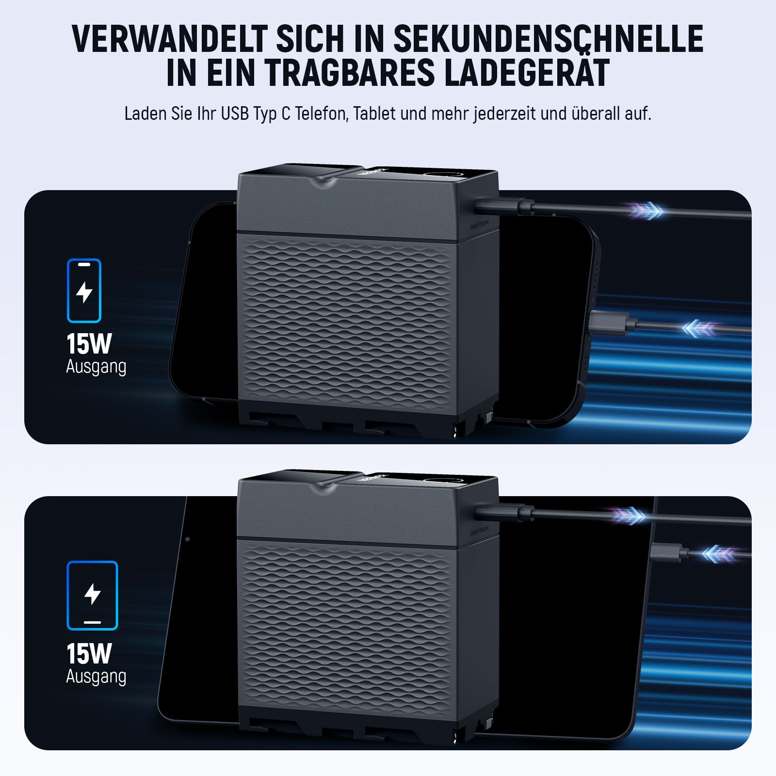 - USB-C (Eingang/Ausgang): Max. 45 W