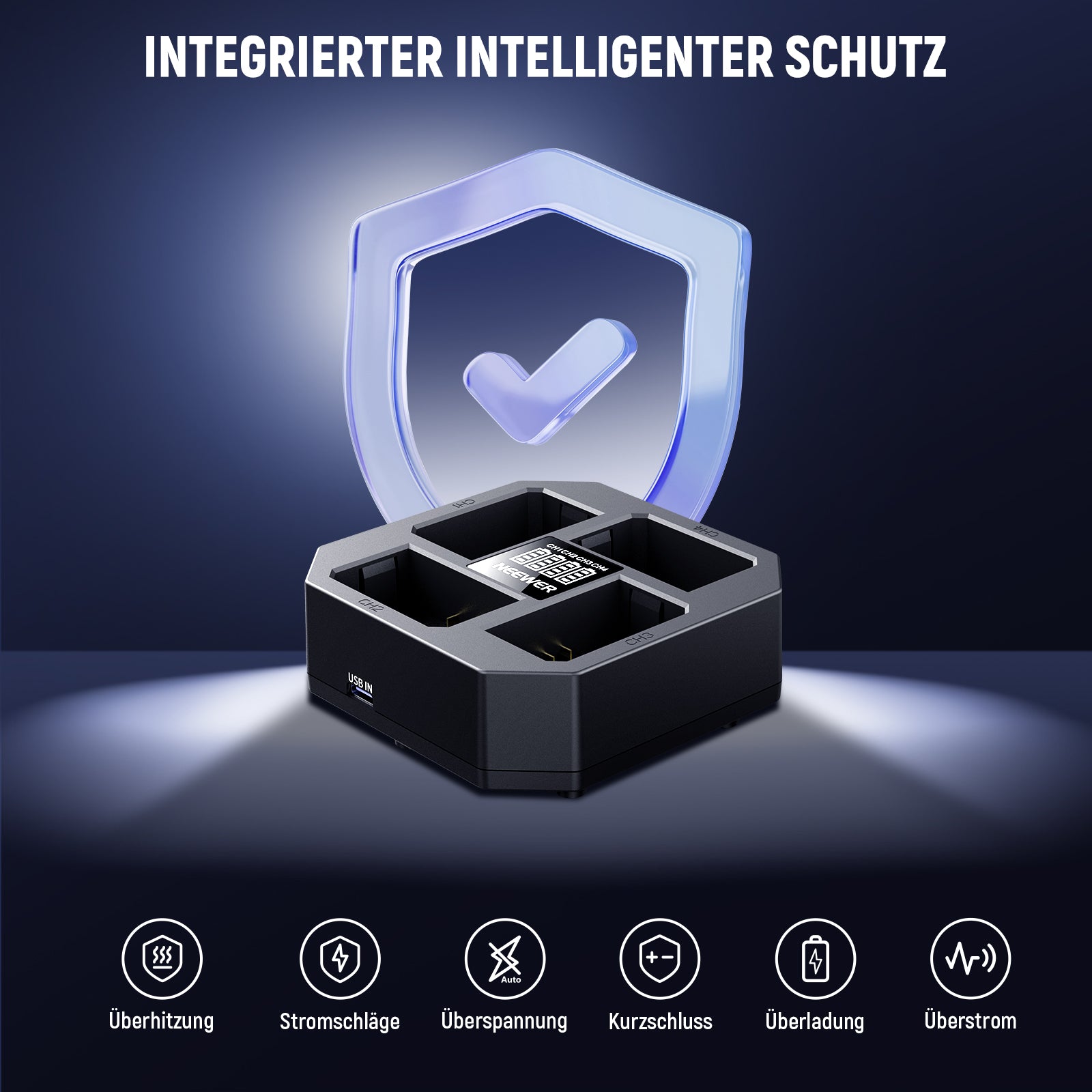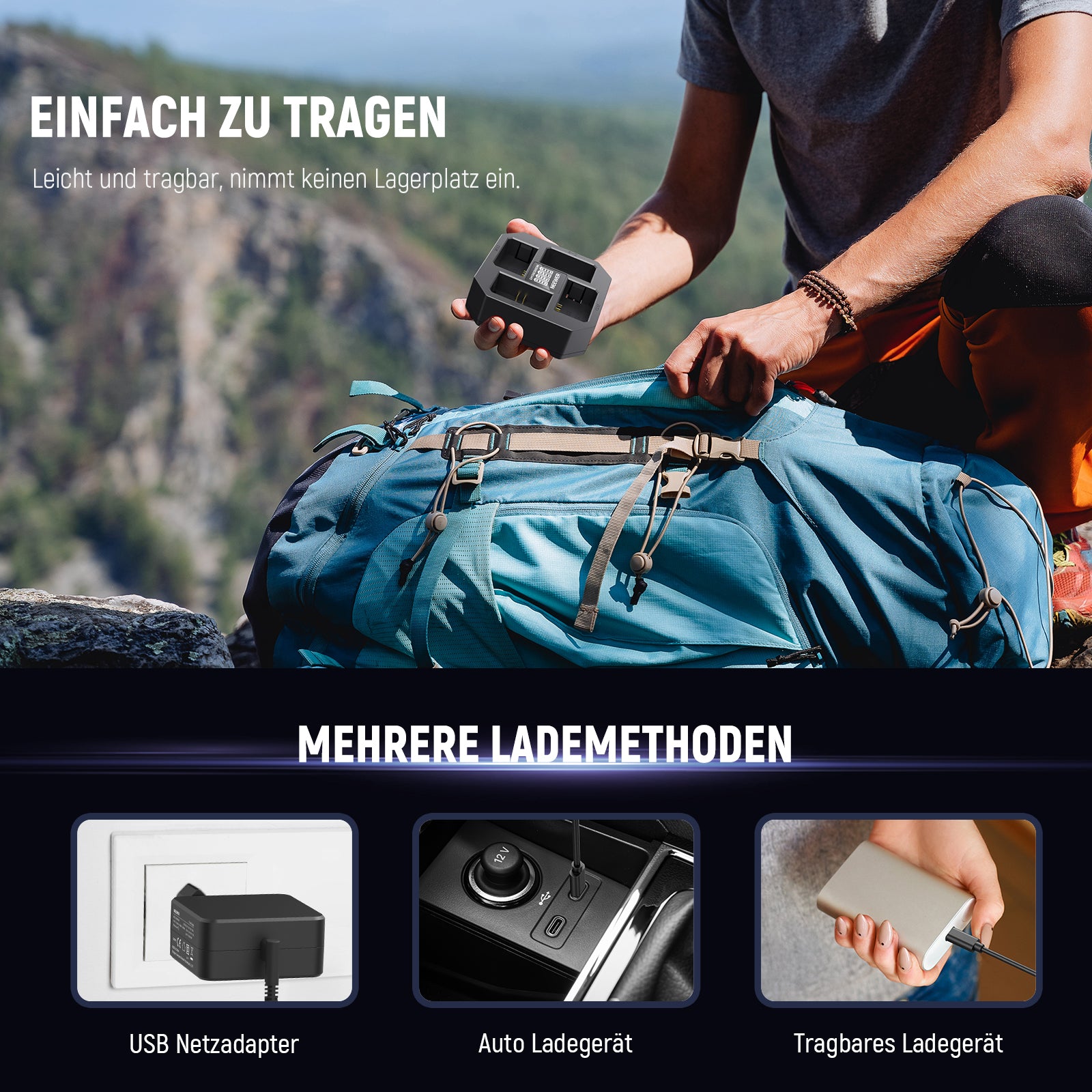 - Gleichzeitiges Laden von vier Batterien- Mit NP-FZ100 USB Ladegerät können Sie bis zu vier NP-FZ100 Akkus gleichzeitig laden. Mit NP-FZ100 USB Ladegerät können Sie bis zu vier NP-FZ100 Akkus gleichzeitig aufladen, sodass Sie stets voll aufgeladene Akkus für Ihre Kamera zur Verfügung haben. Dies ist unverzichtbares Zubehör für Content Creator. Hinweis: Achten Sie bei Verwendung eines USB A Adapters darauf, dass dieser das QC 12V Protokoll unterstützt, da das Ladegerät sonst nicht funktioniert